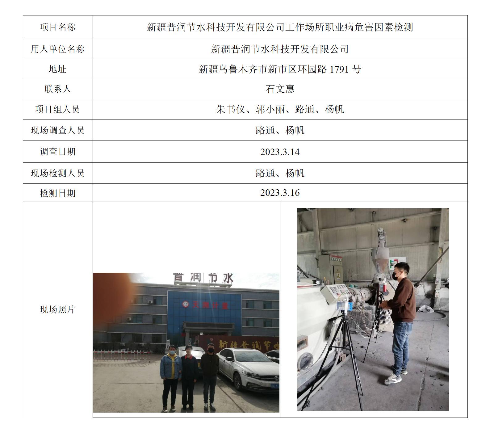 新疆普润节水科技开发有限公司工作场所职业病危害因素检测