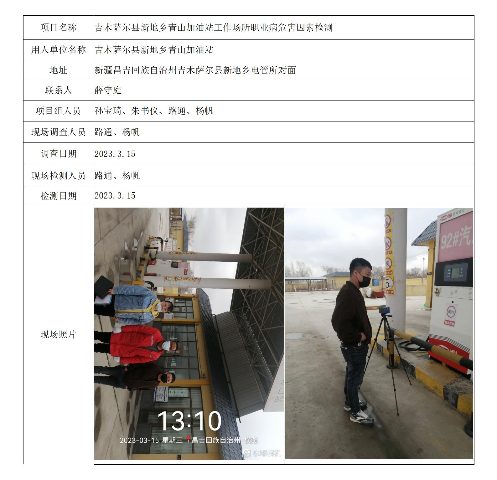 吉木萨尔县新地乡青山加油站工作场所职业病危害因素检测