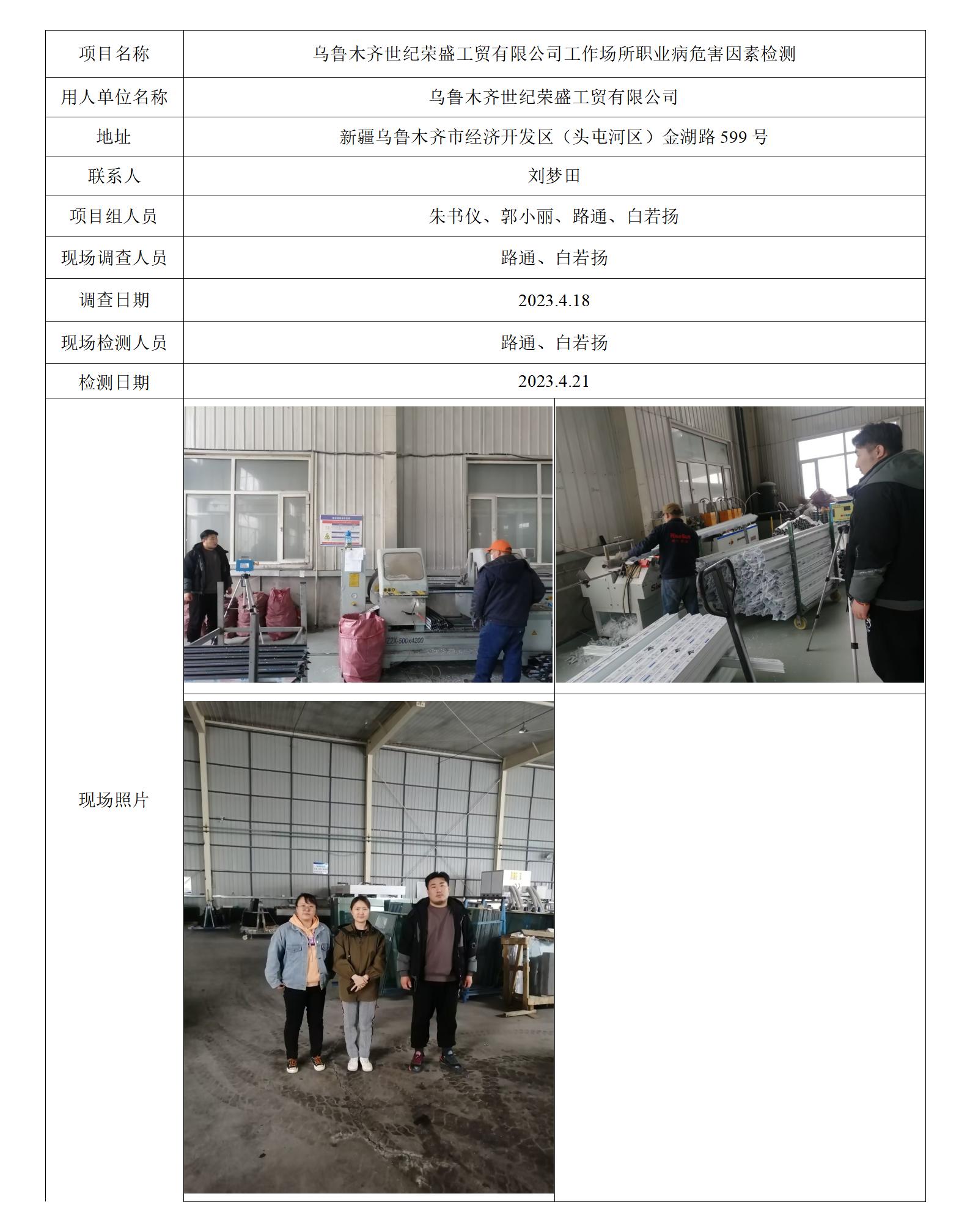 乌鲁木齐世纪荣盛工贸有限公司工作场所职业病危害因素检测