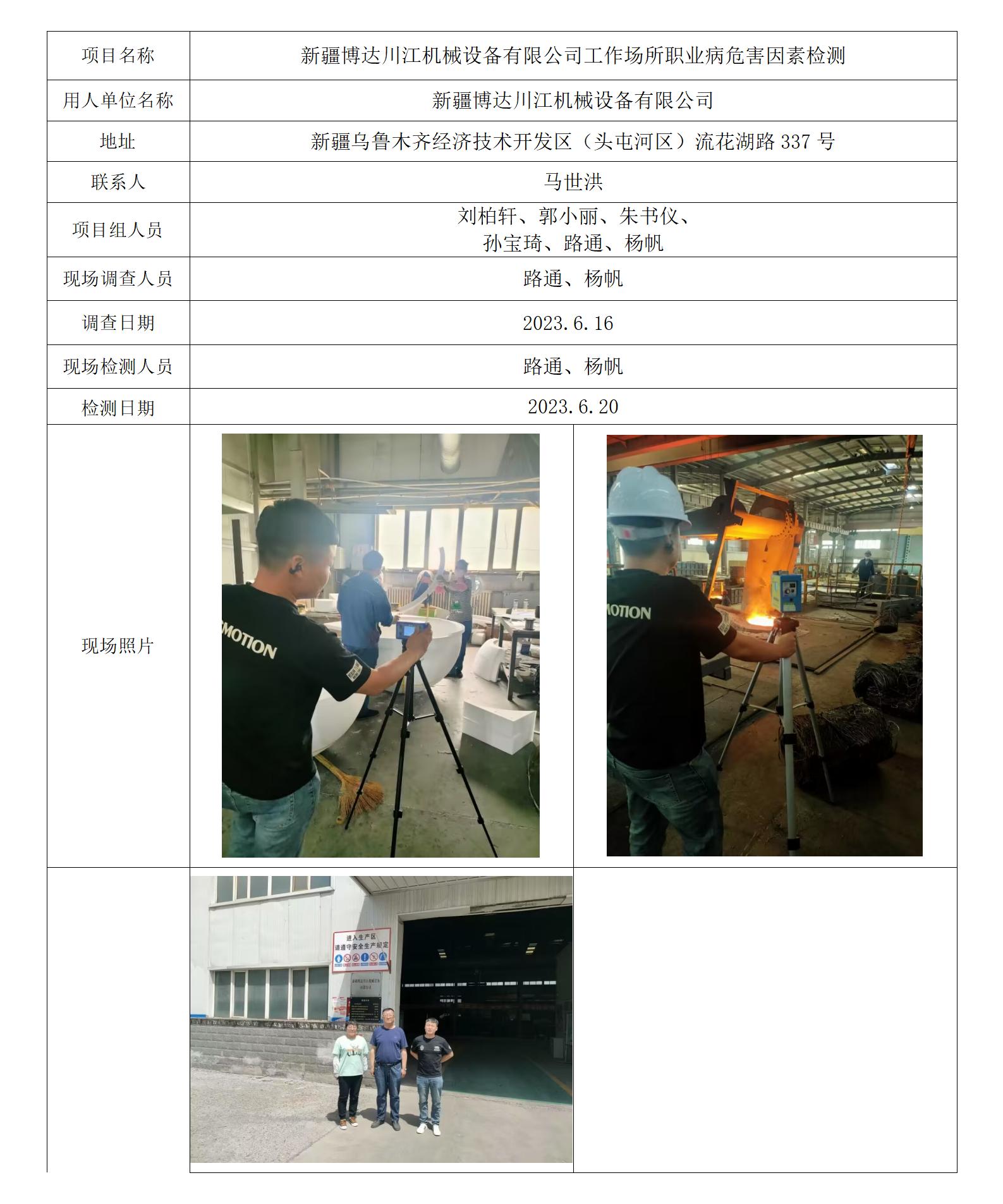 新疆博达川江机械设备有限公司工作场所职业病危害因素检测