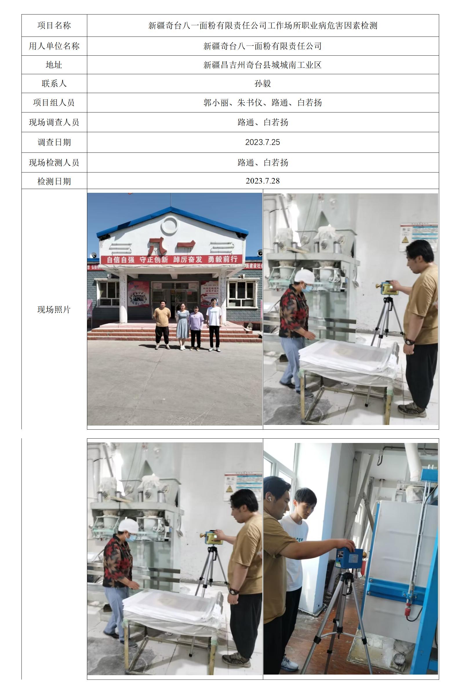 新疆奇台八一面粉有限责任公司工作场所职业病危害因素检测