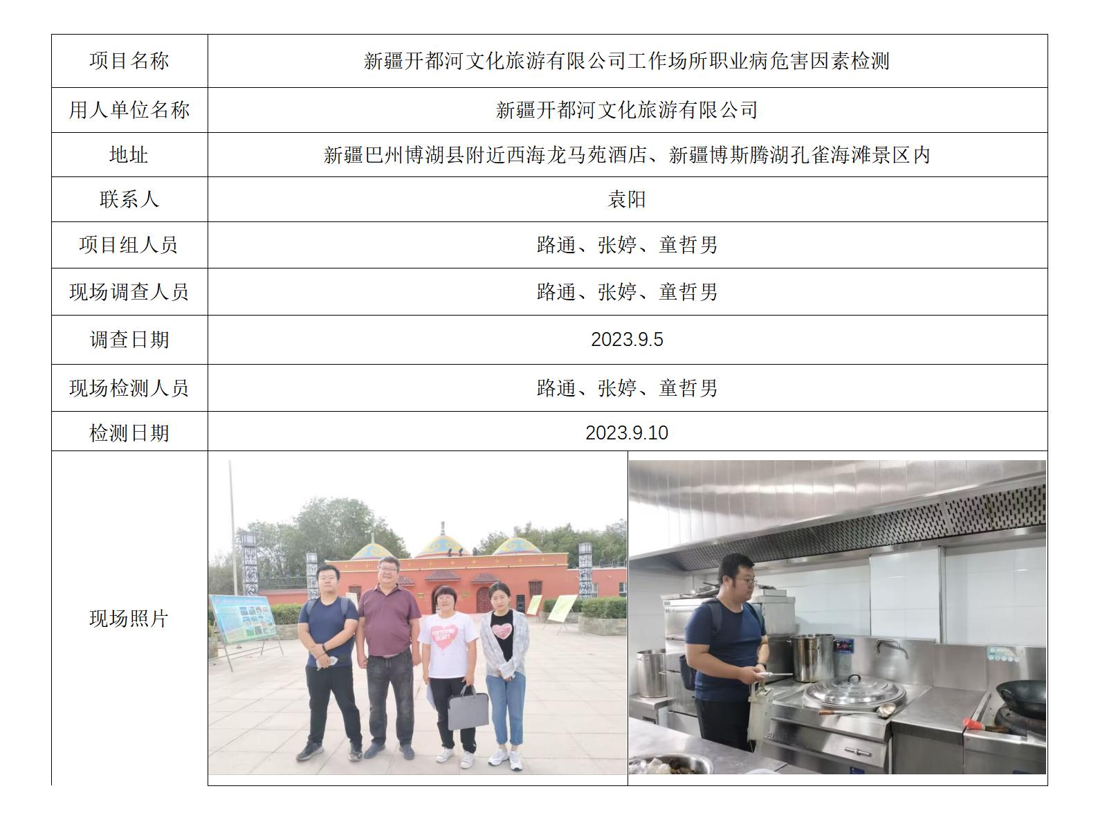 新疆开都河文化旅游有限公司工作场所职业病危害因素检测