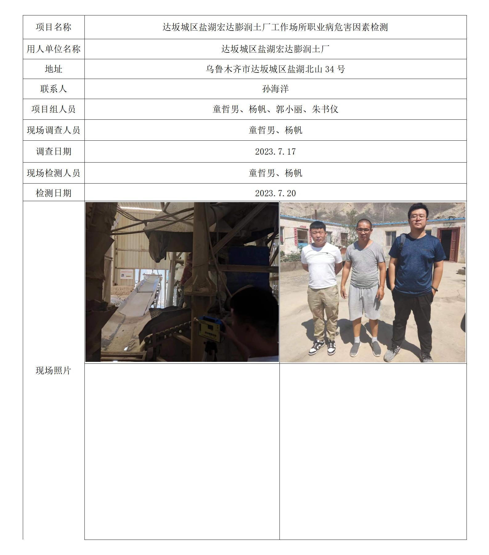 达坂城区盐湖宏达膨润土厂工作场所职业病危害因素检测