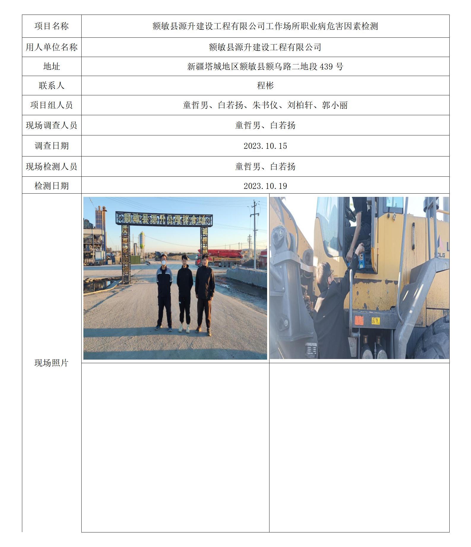 额敏县源升建设工程有限公司工作场所职业病危害因素检测