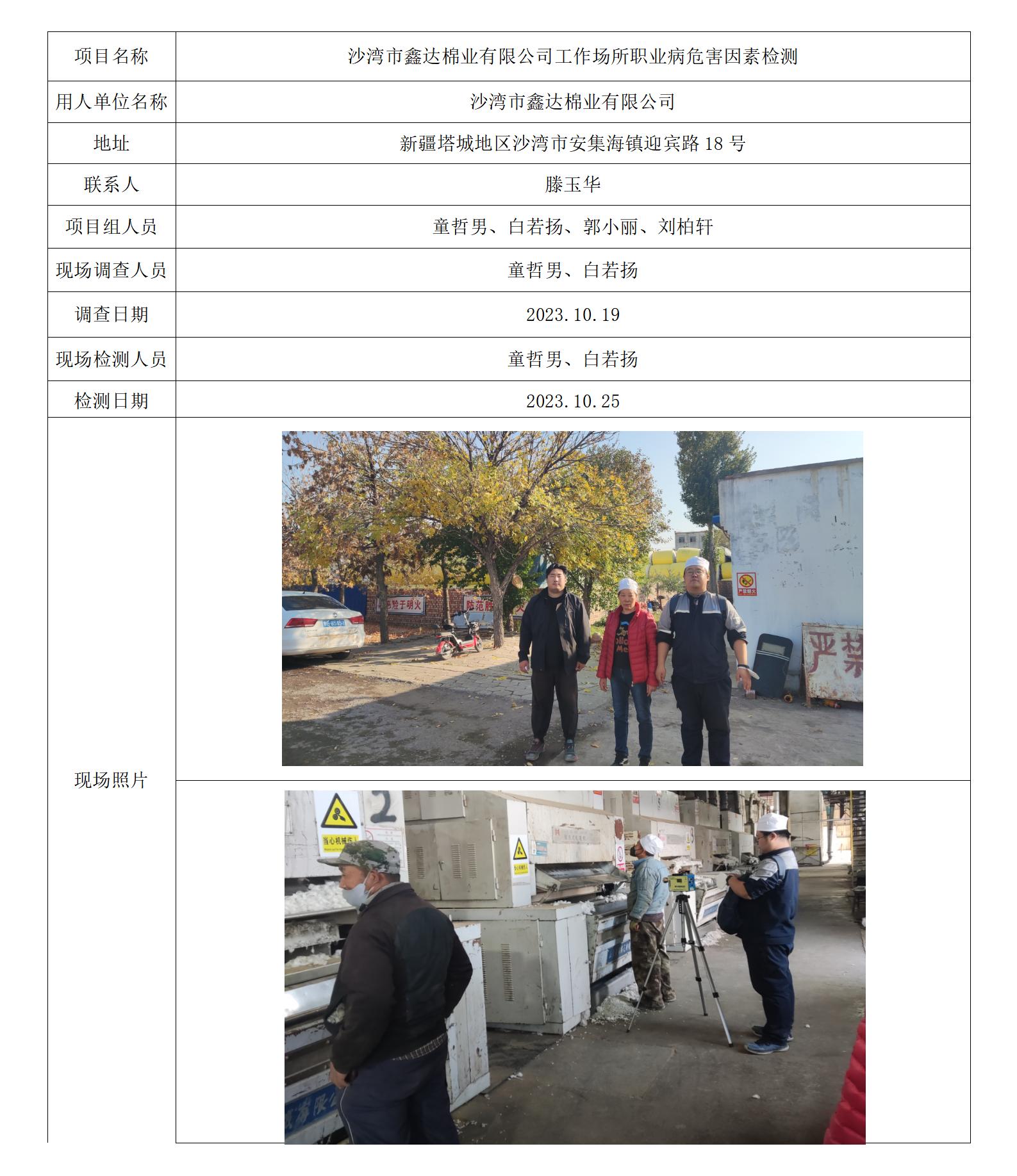 沙湾市鑫达棉业有限公司工作场所职业病危害因素检测