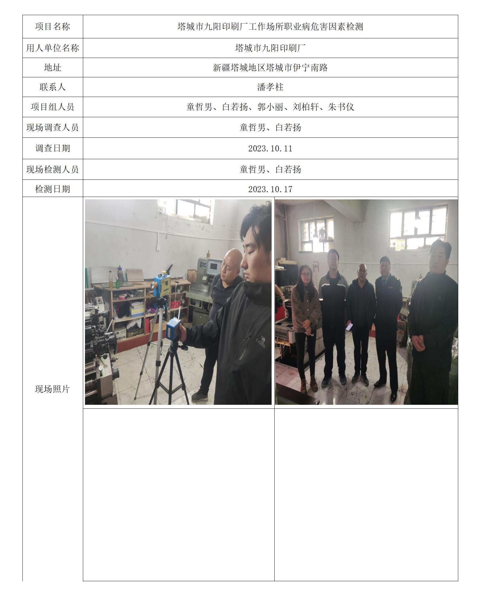 塔城市九阳印刷厂工作场所职业病危害因素检测