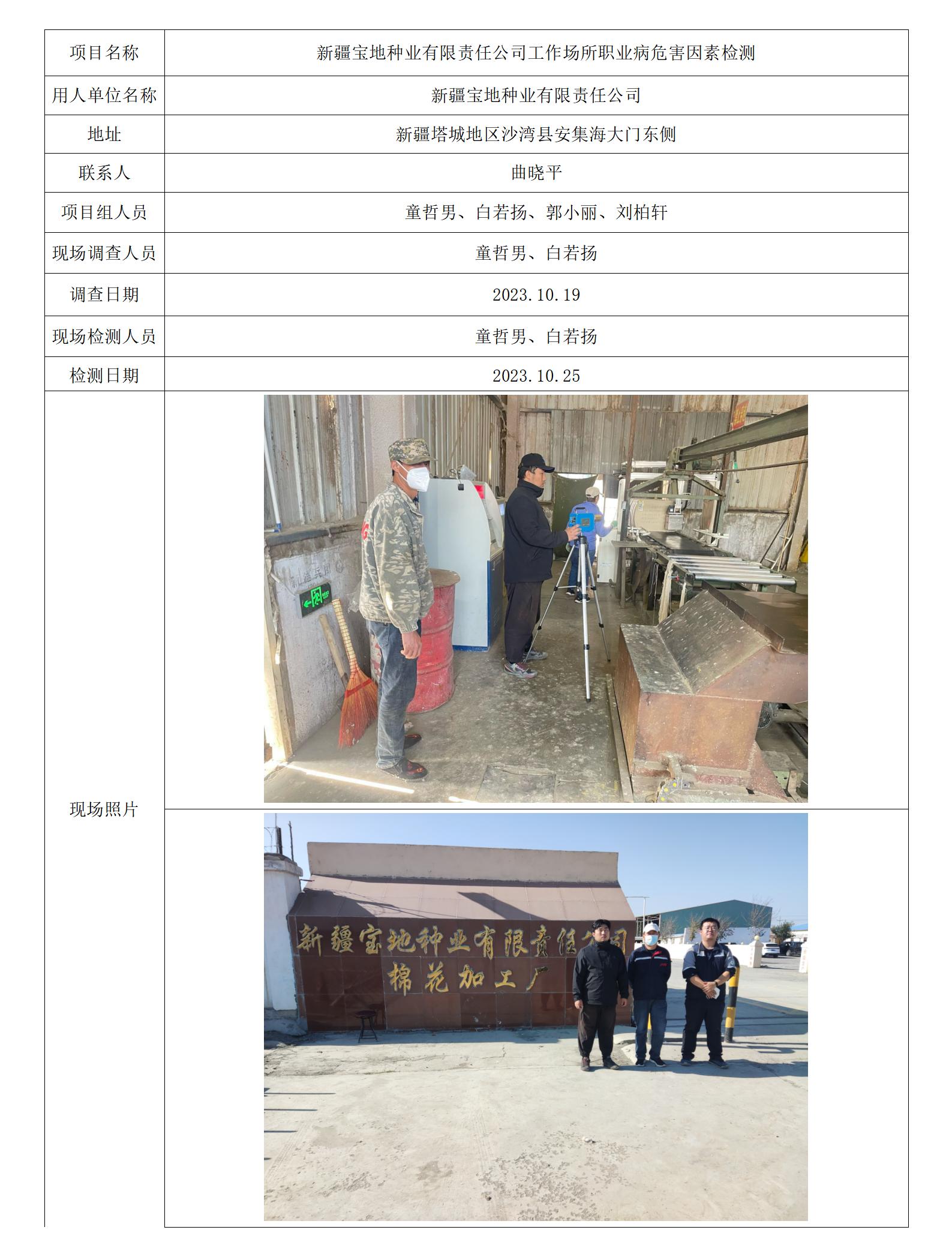 新疆宝地种业有限责任公司工作场所职业病危害因素检测