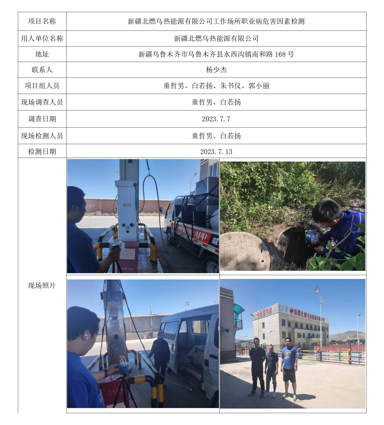 新疆北燃乌热能源有限公司工作场所职业病危害因素检测