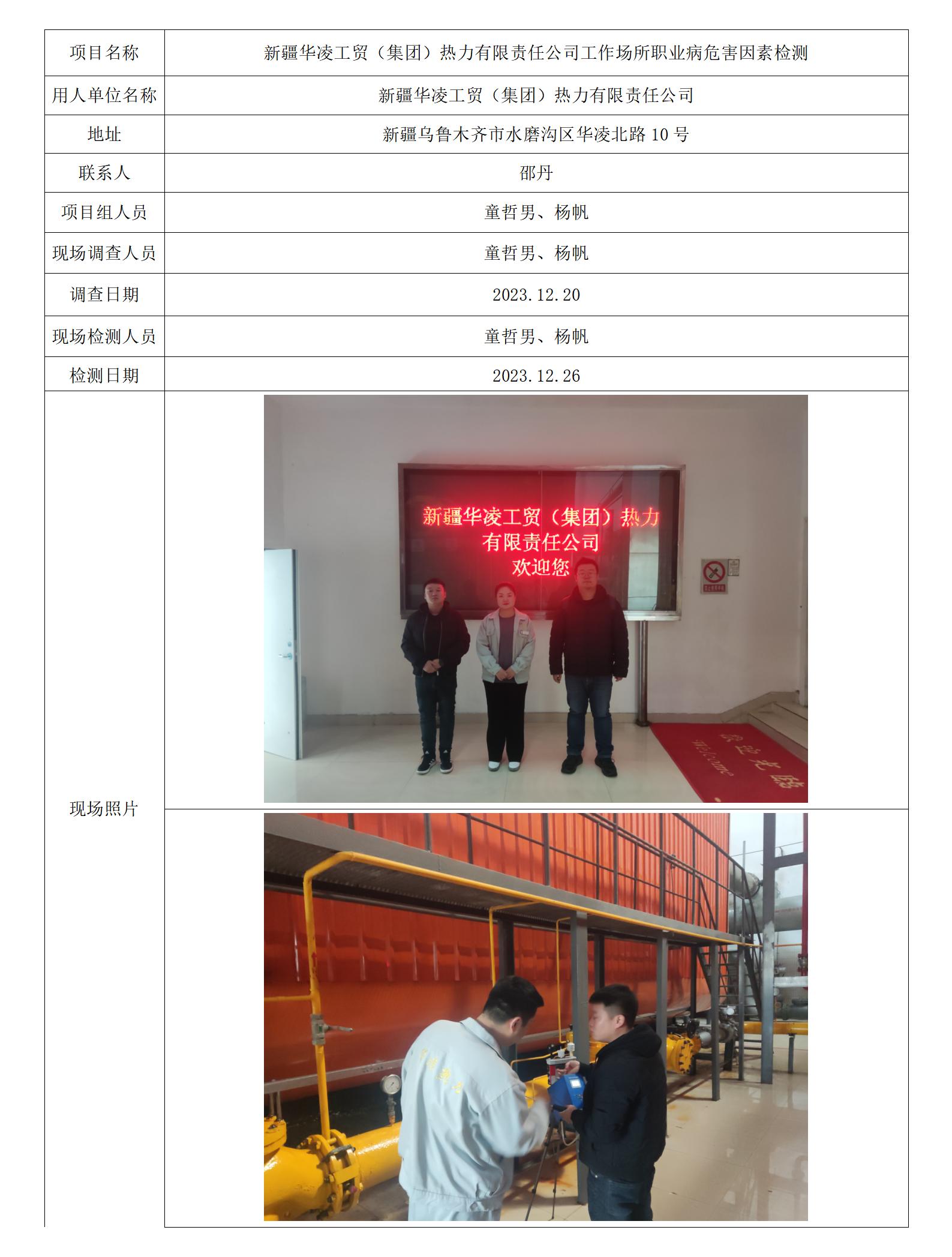 新疆华凌工贸(集团)热力有限责任公司工作场所职业病危害因素检测
