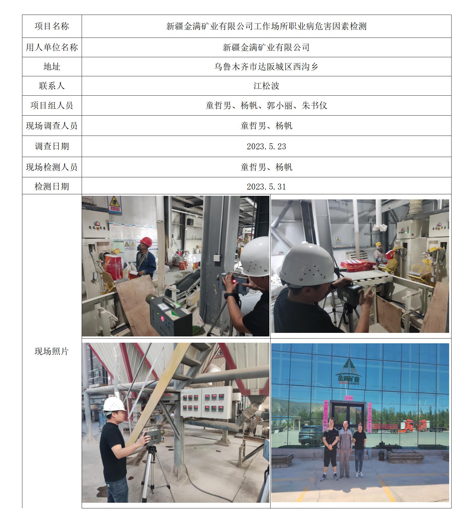 新疆金满矿业有限公司工作场所职业病危害因素检测