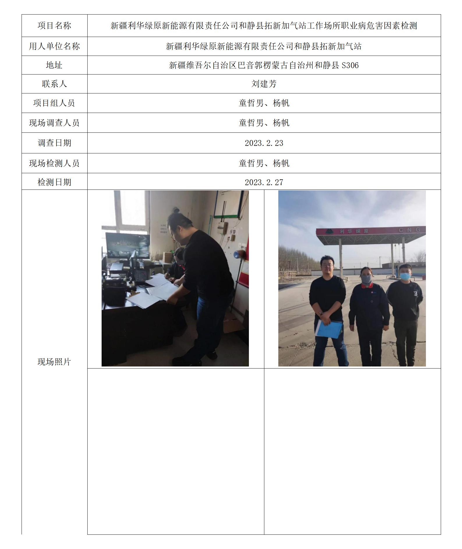 新疆利华绿原新能源有限责任公司和静县二十三团惠民加气站工作场所职业病危害因素检测