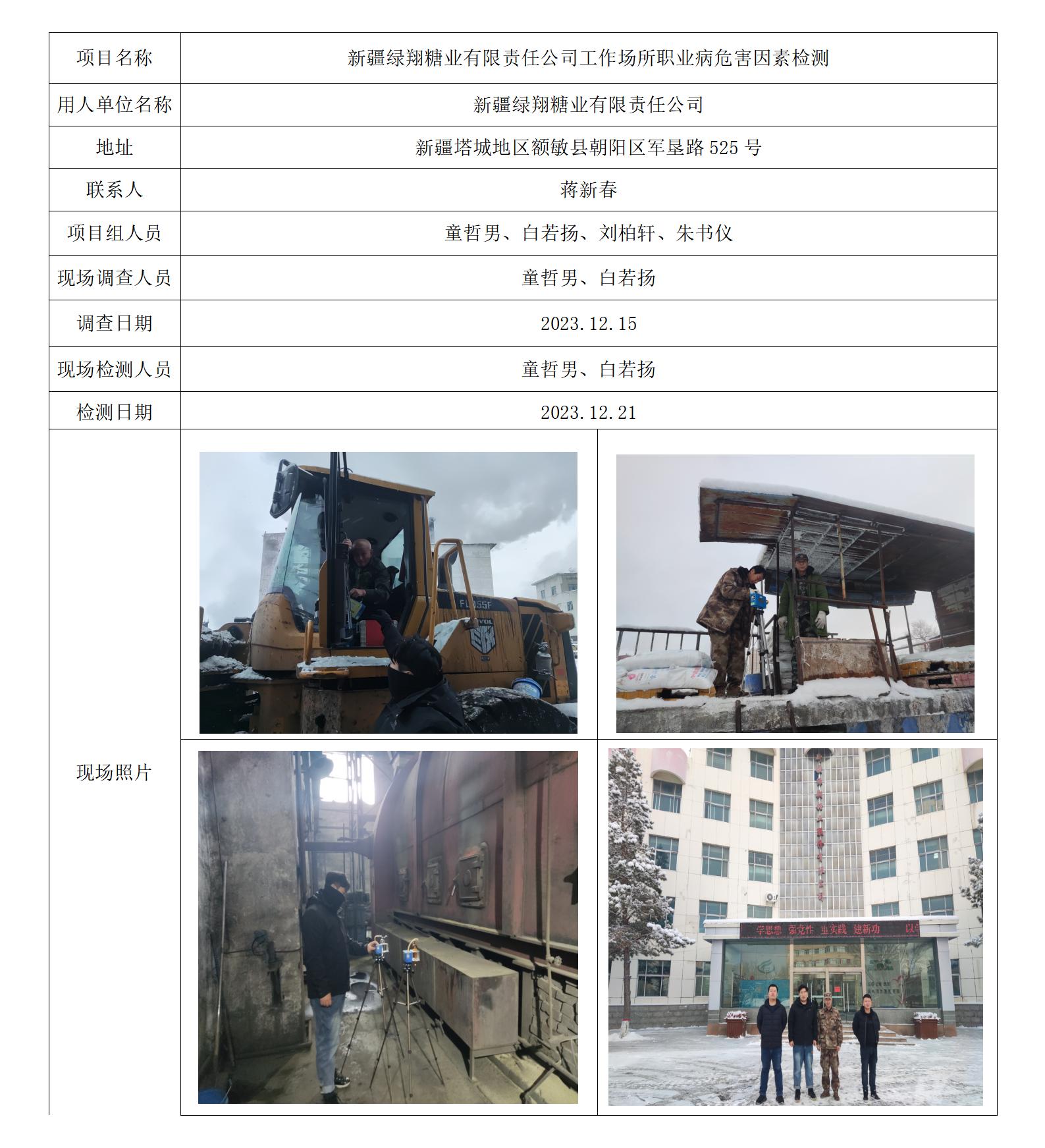 新疆绿翔糖业有限责任公司工作场所职业病危害因素检测
