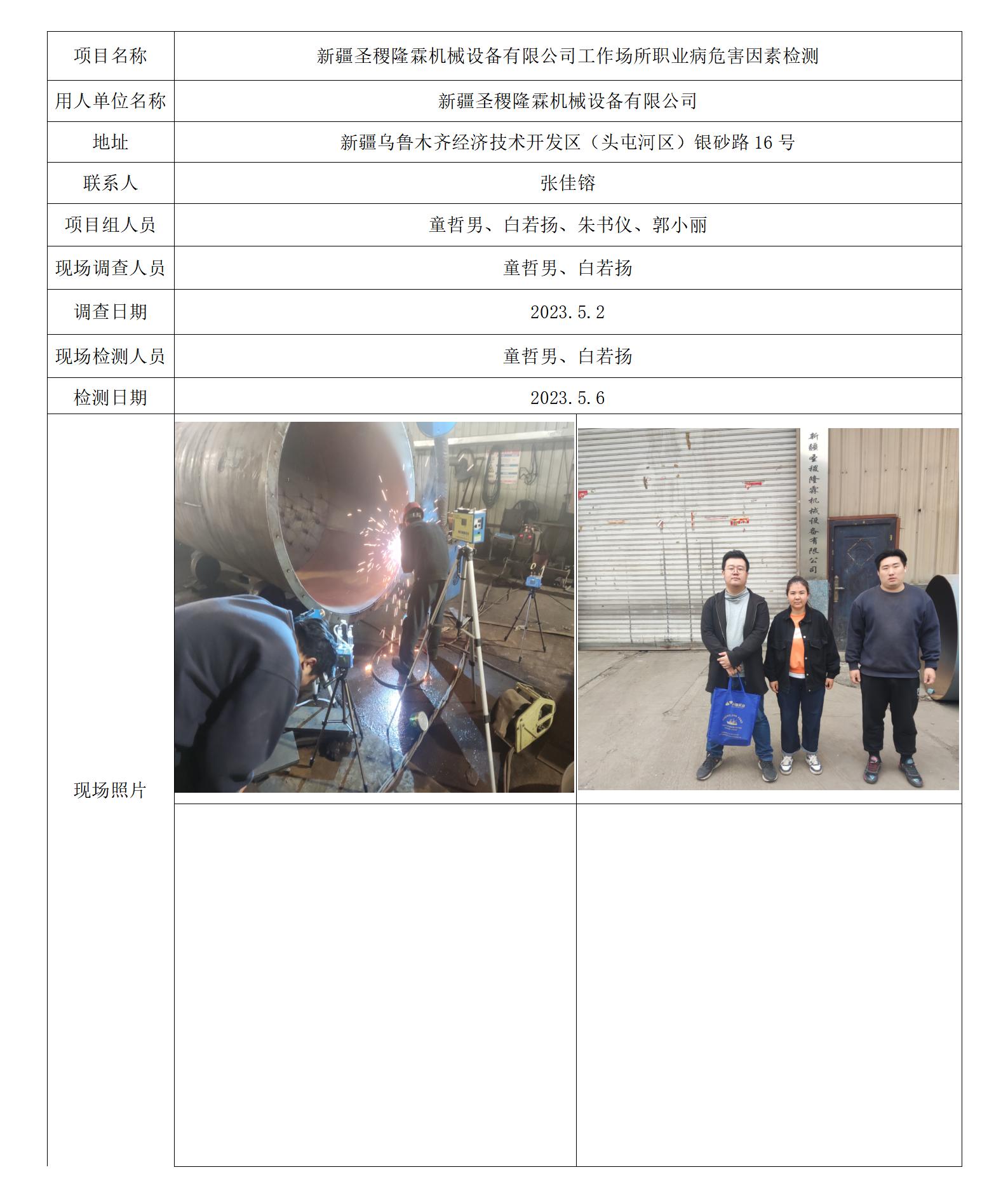 新疆圣稷隆霖机械设备有限公司工作场所职业病危害因素检测