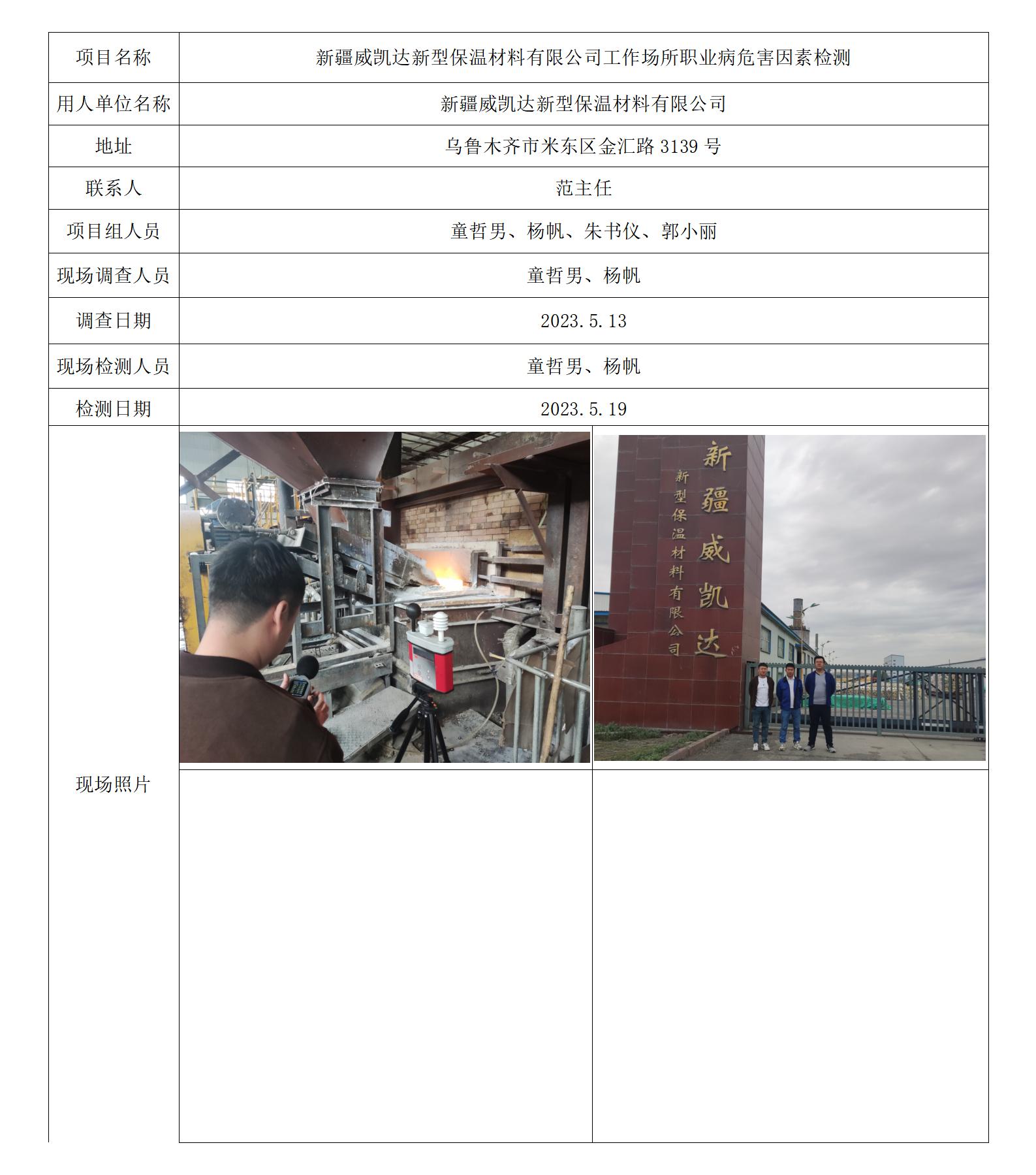 新疆威凯达新型保温材料有限公司工作场所职业病危害因素检测
