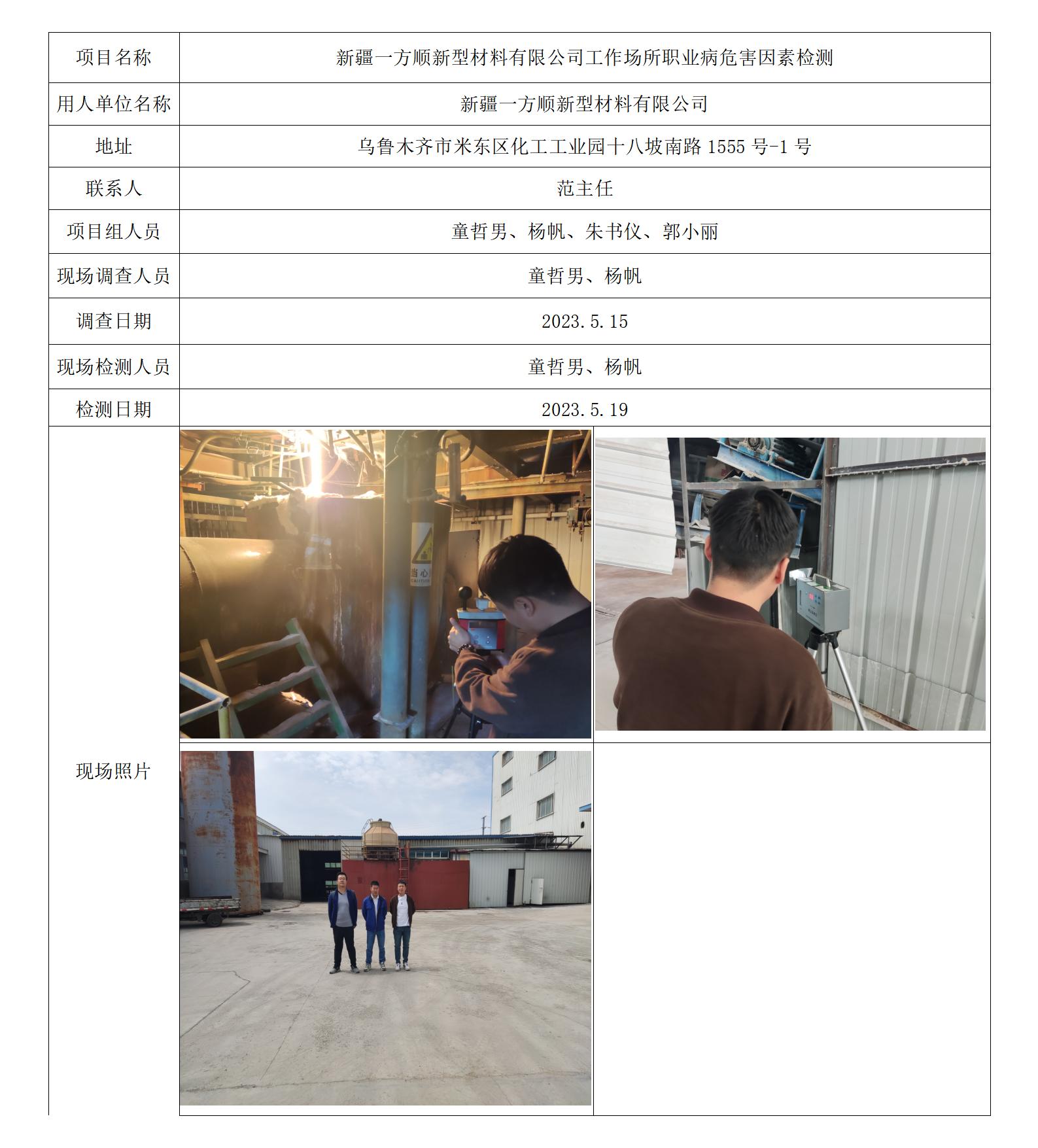 新疆一方顺新型材料有限公司工作场所职业病危害因素检测