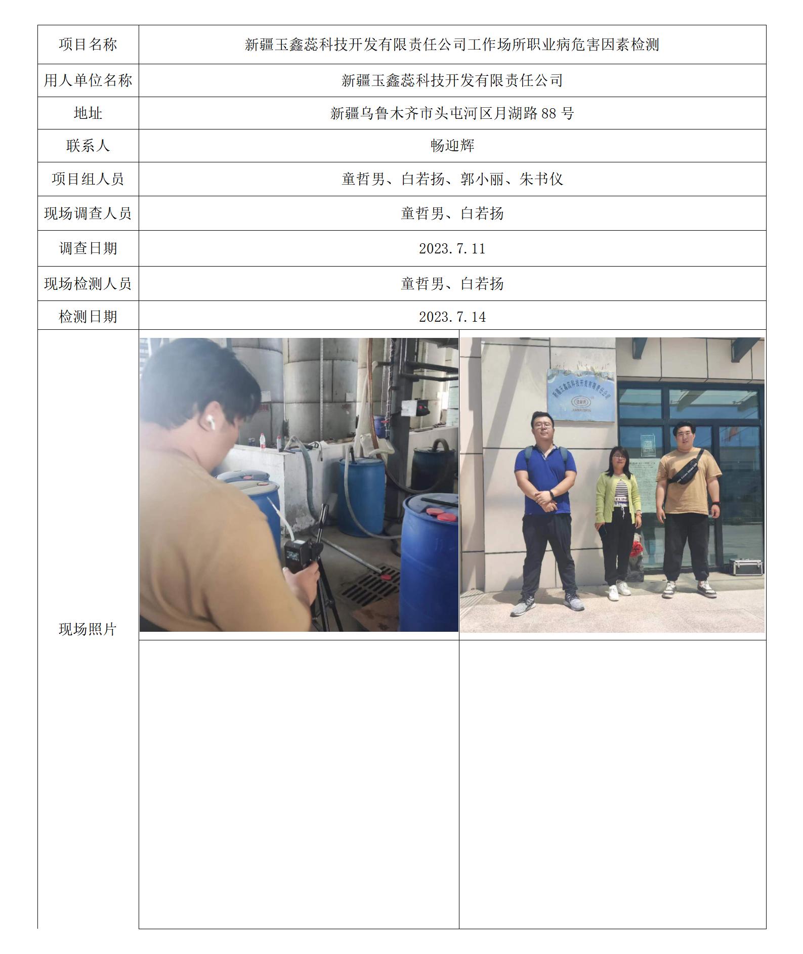 新疆玉鑫蕊科技开发有限责任公司工作场所职业病危害因素检测