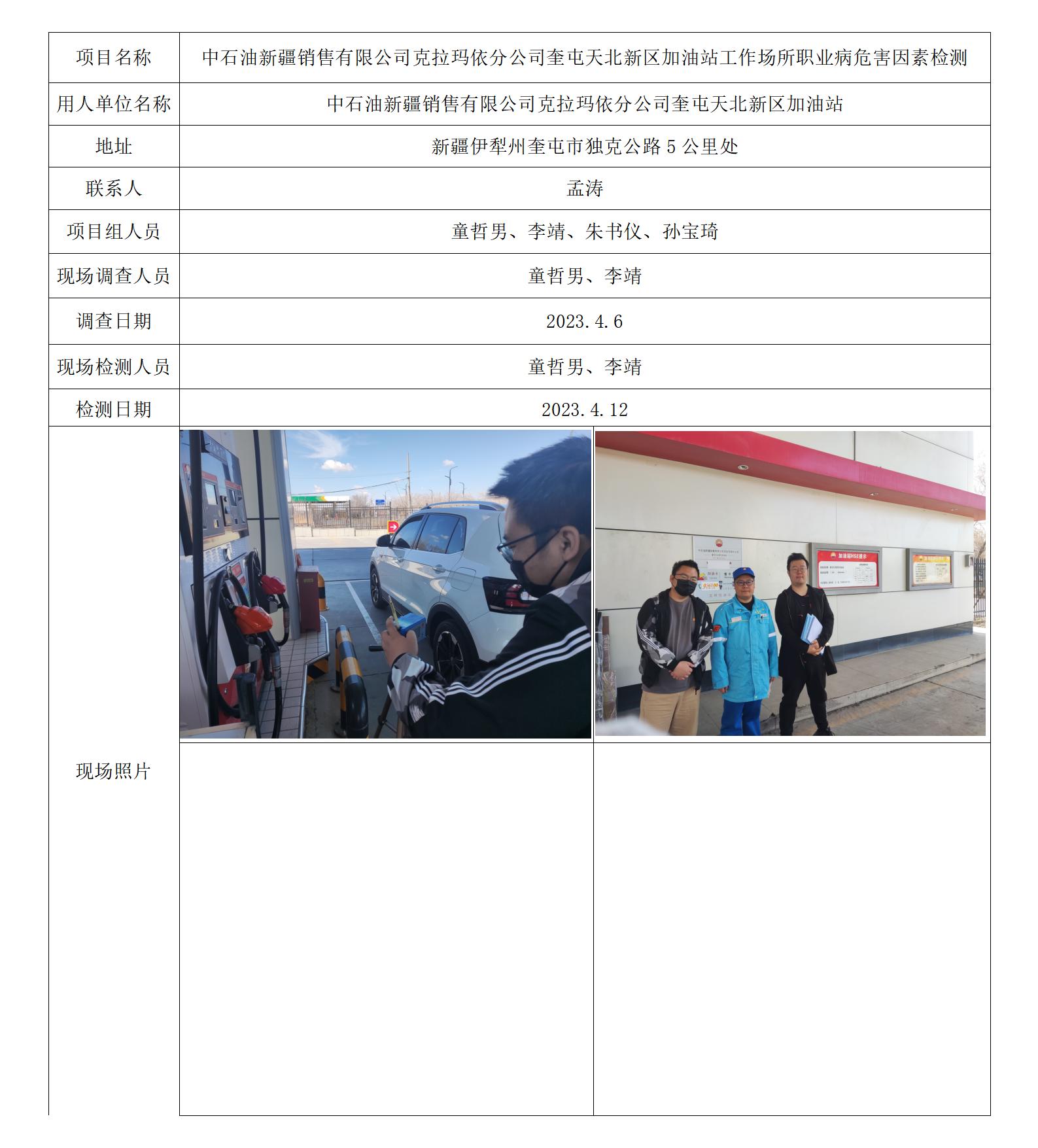 中石油新疆销售有限公司克拉玛依分公司奎屯天北新区加油站工作场所职业病危害因素检测 2023-05-31 10:47:05