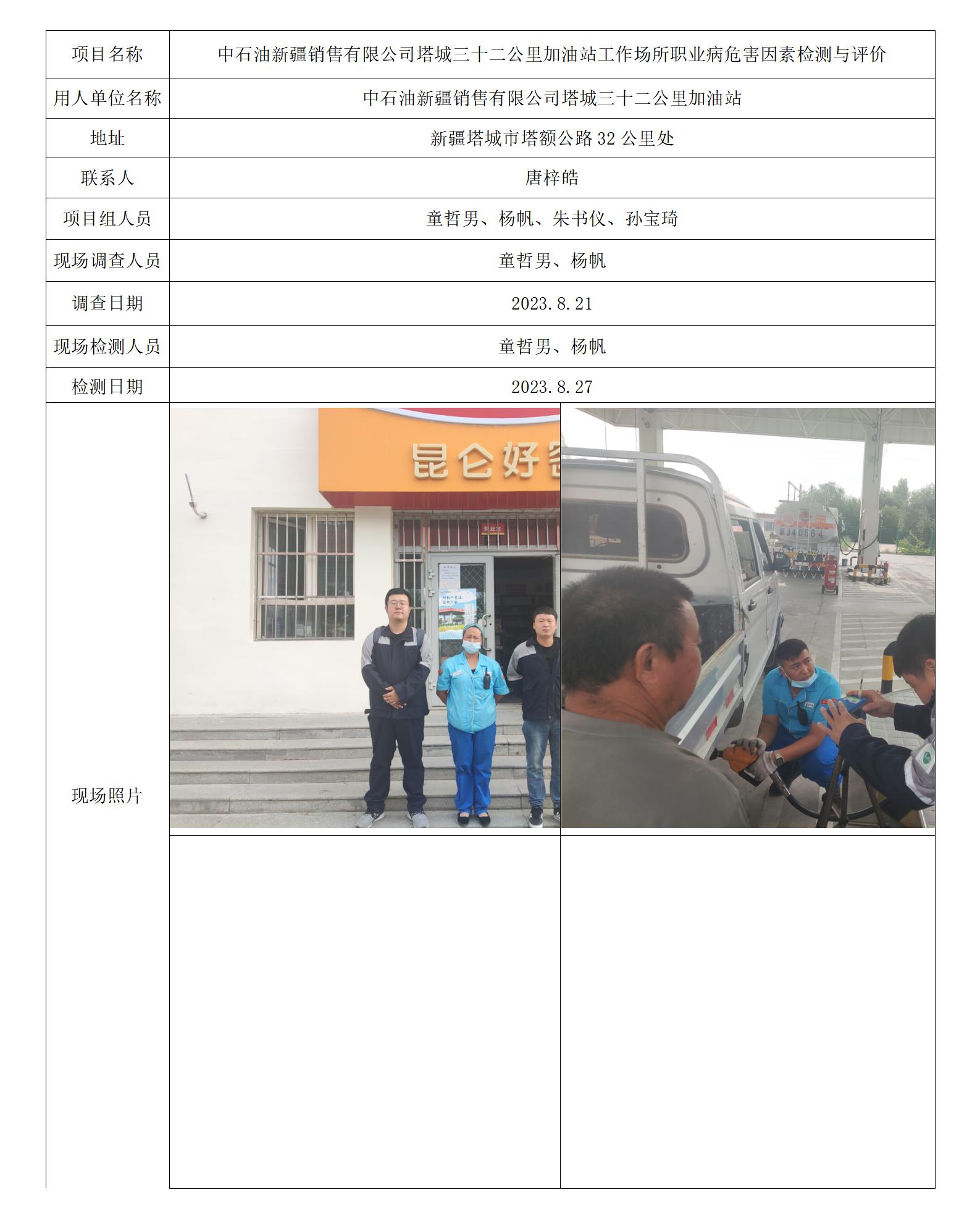 中石油新疆销售有限公司塔城三十二公里加油站工作场所职业病危害因素检测与评价
