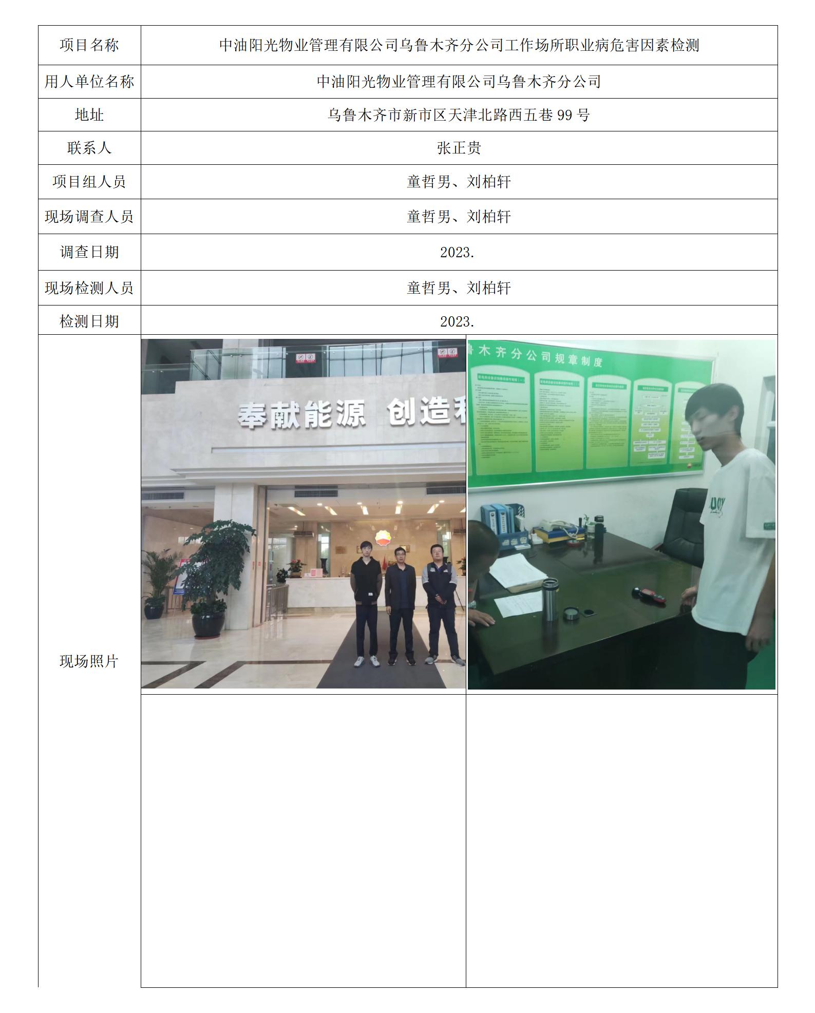 中油阳光物业管理有限公司乌鲁木齐分公司工作场所职业病危害因素检测