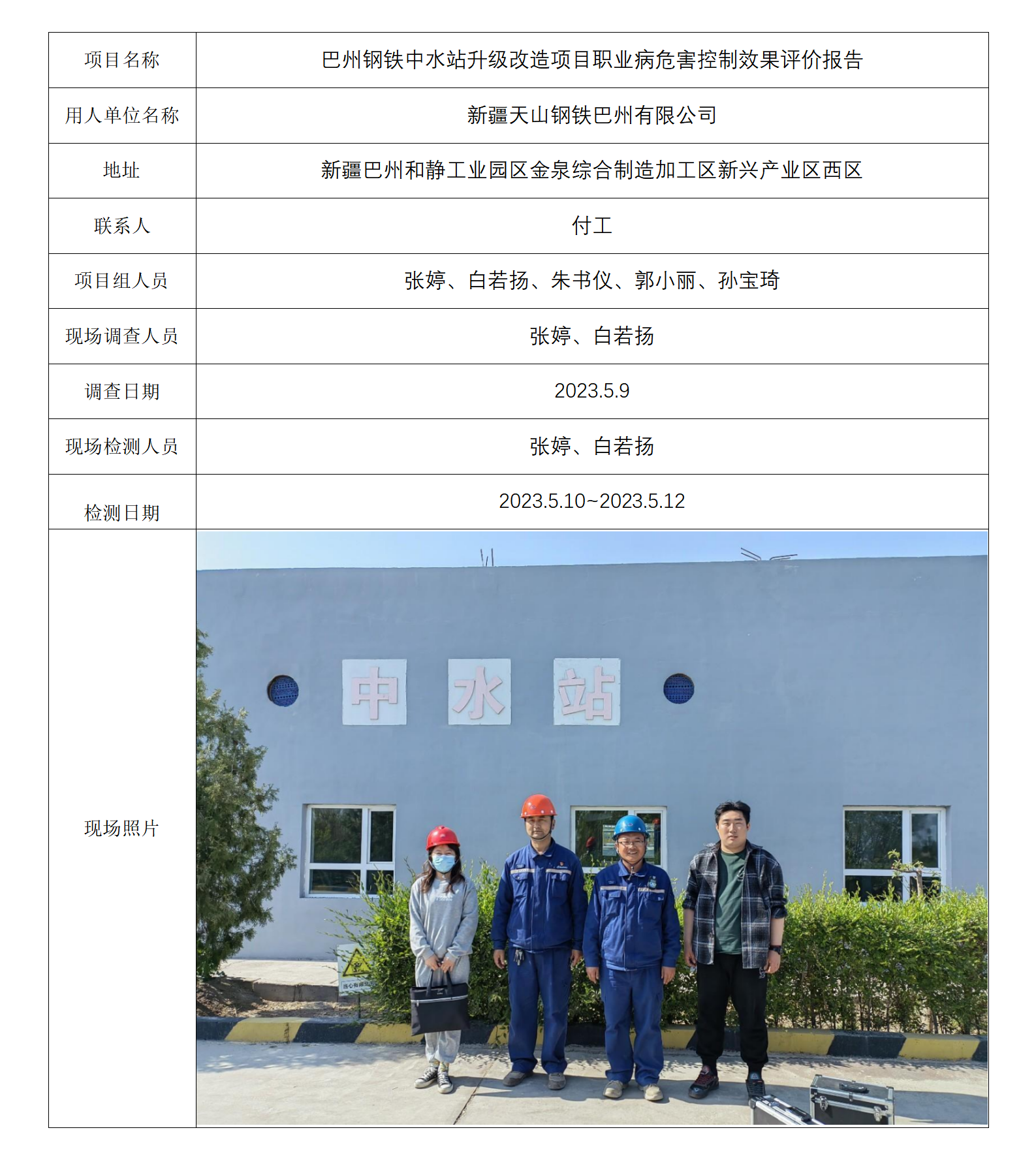 巴州钢铁中水站升级改造项目职业病危害控制效果评价
