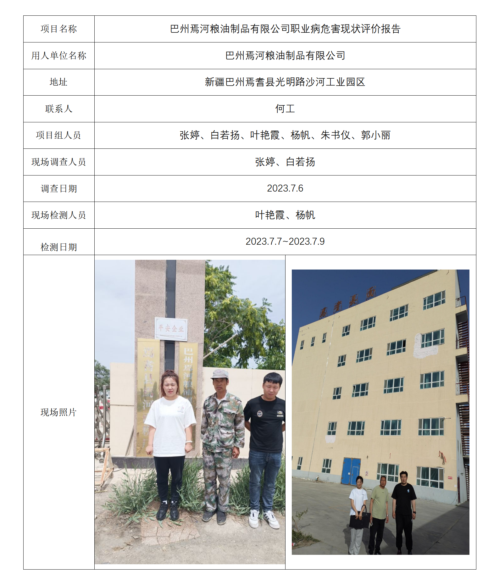 巴州焉河粮油制品有限公司职业病危害现状评价