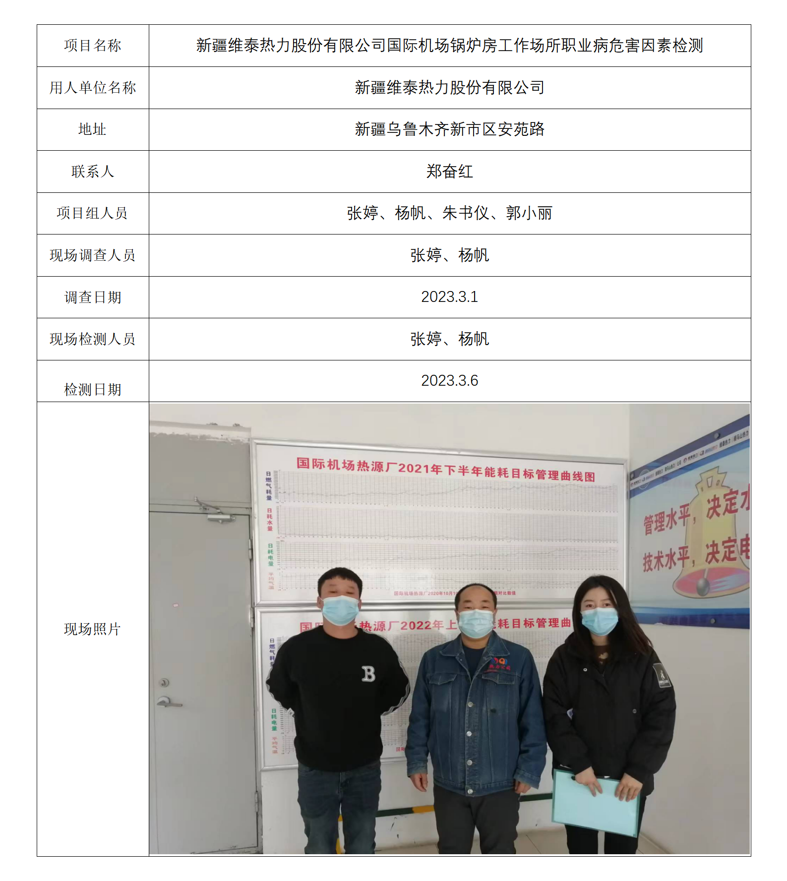 新疆维泰热力股份有限公司国际机场锅炉房工作场所职业病危害因素检测