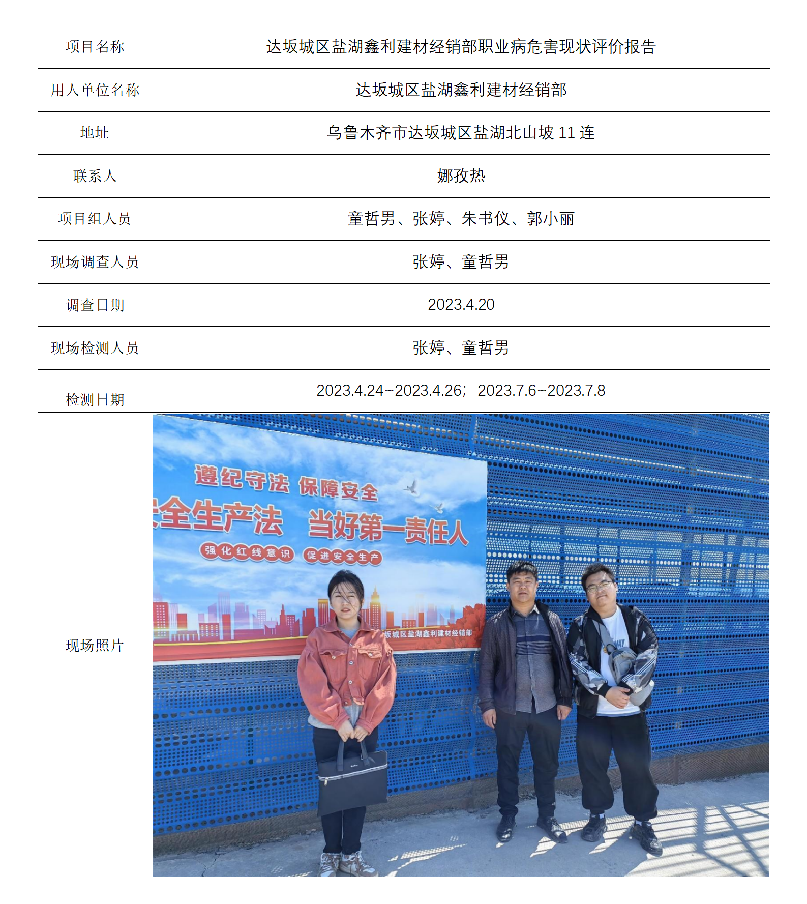 达坂城区盐湖鑫利建材经销部职业病危害现状评价