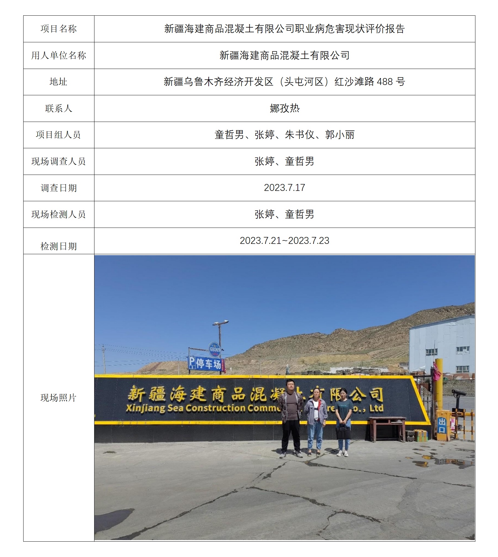 新疆海建商品混凝土有限公司职业病危害现状评价