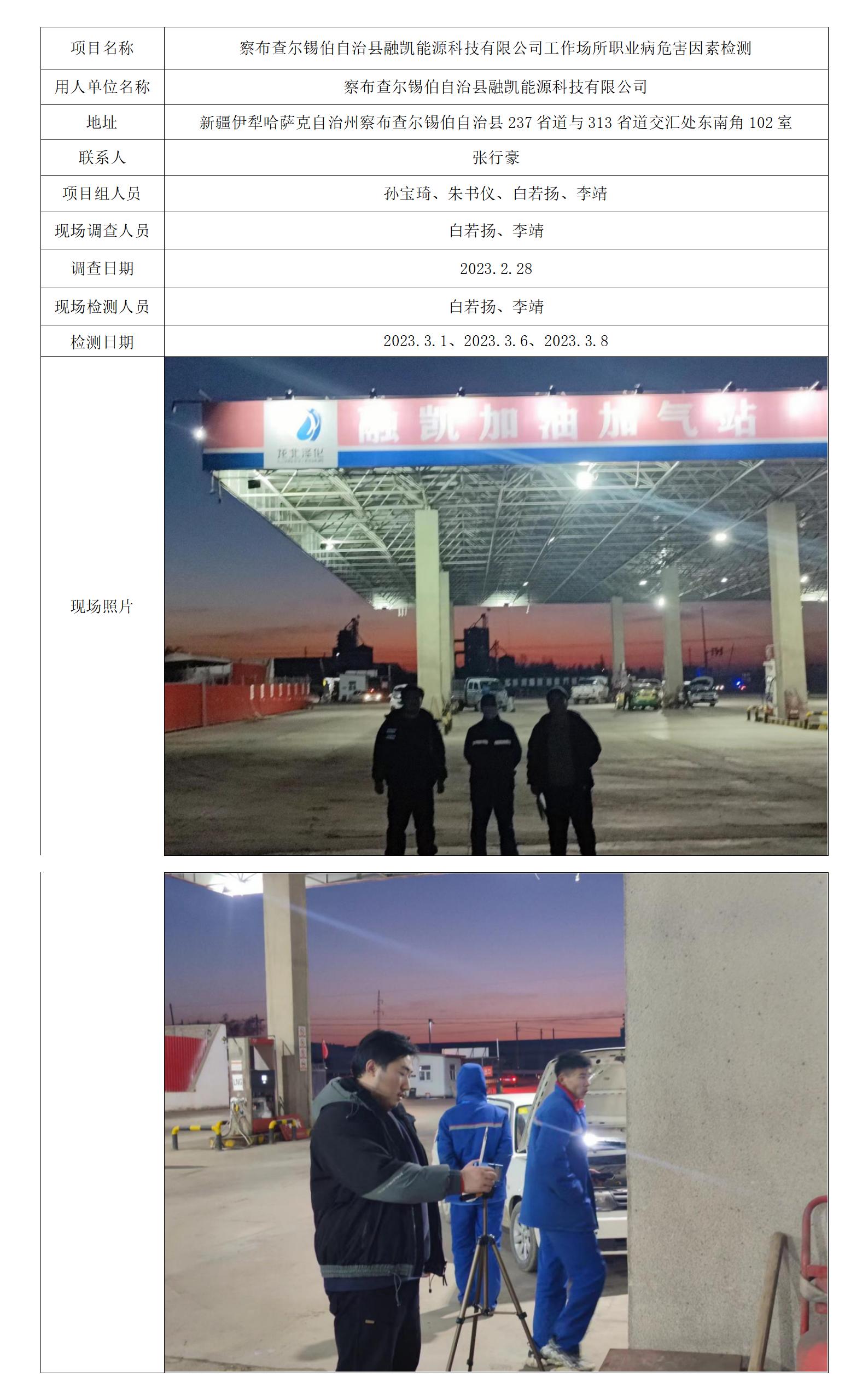 察布查尔锡伯自治县融凯能源科技有限公司工作场所职业病危害因素检测
