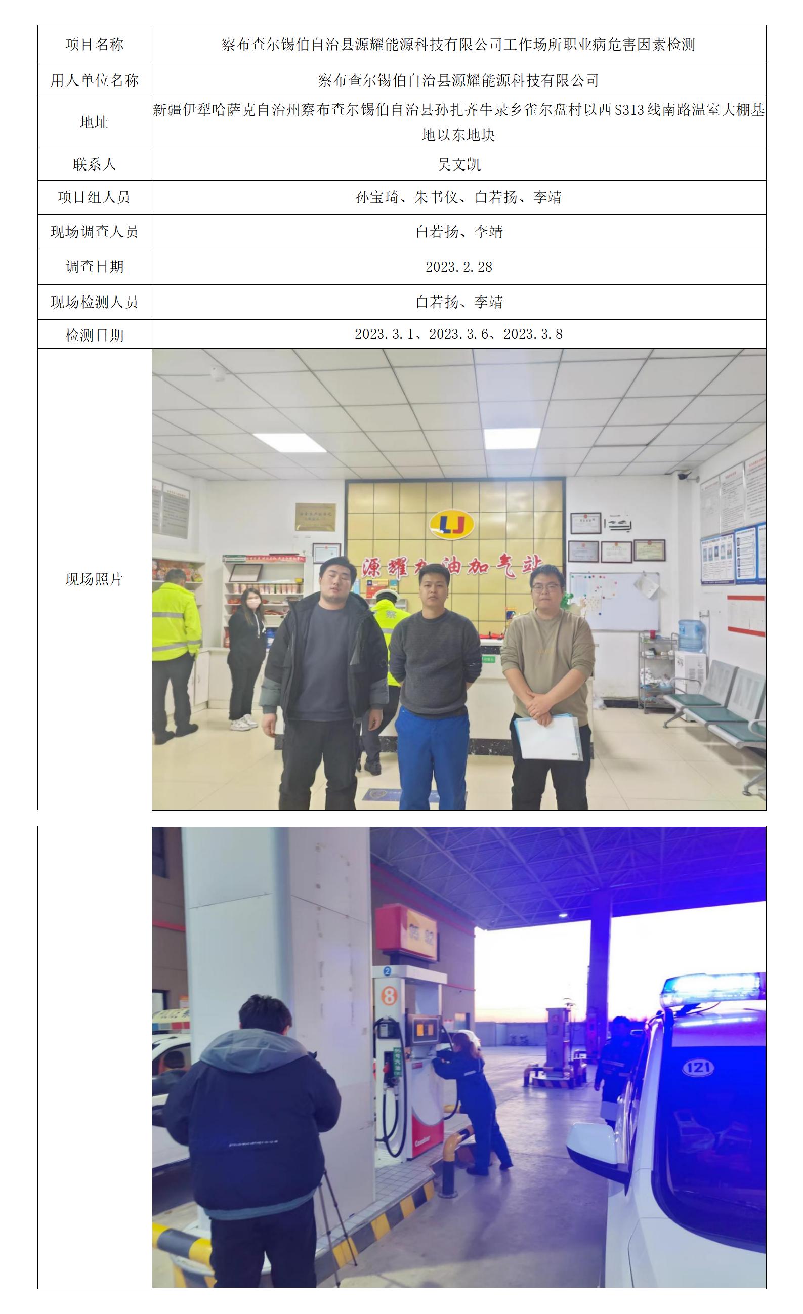 察布查尔锡伯自治县源耀能源科技有限公司工作场所职业病危害因素检测