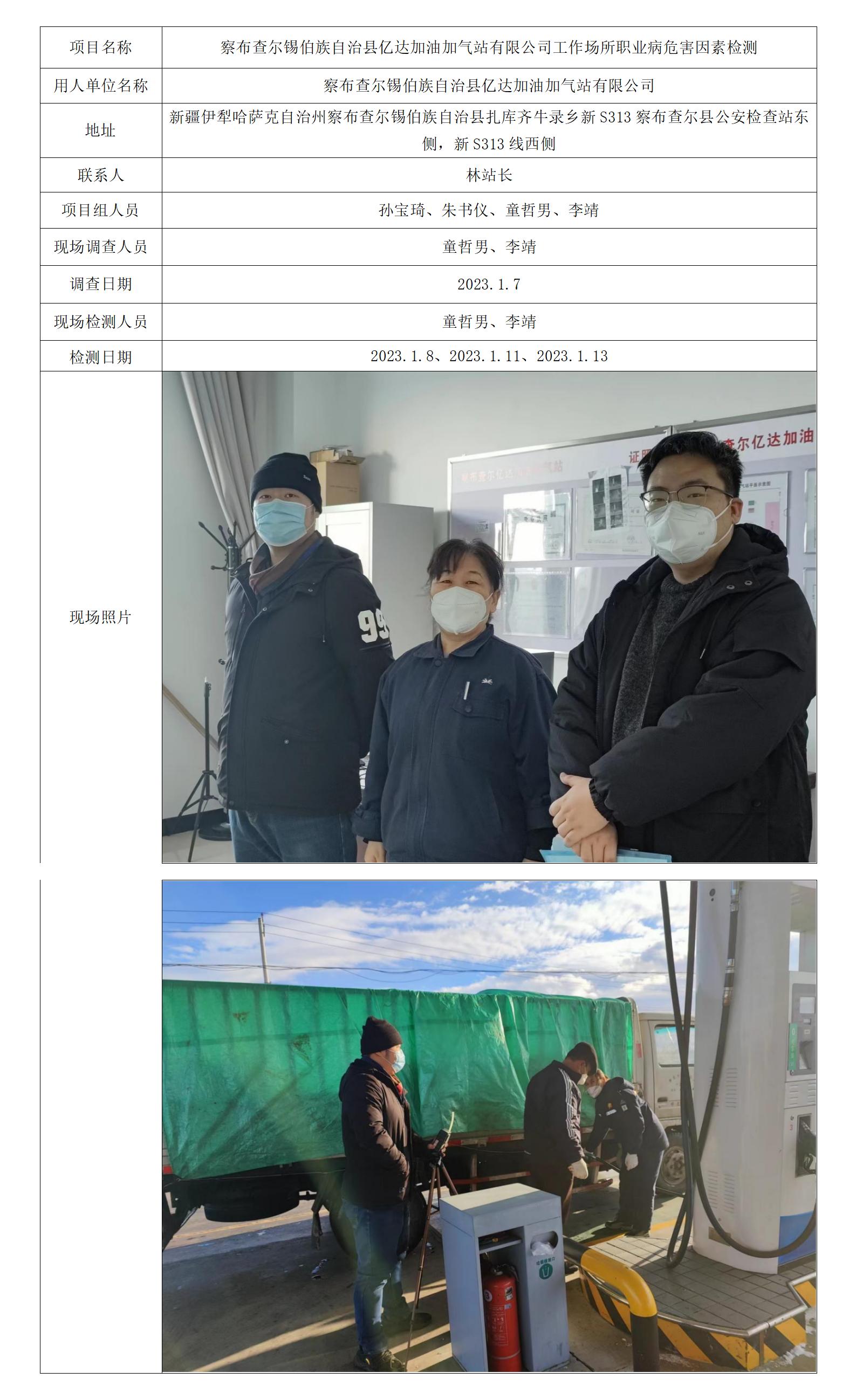 察布查尔锡伯族自治县亿达加油加气站有限公司工作场所职业病危害因素检测