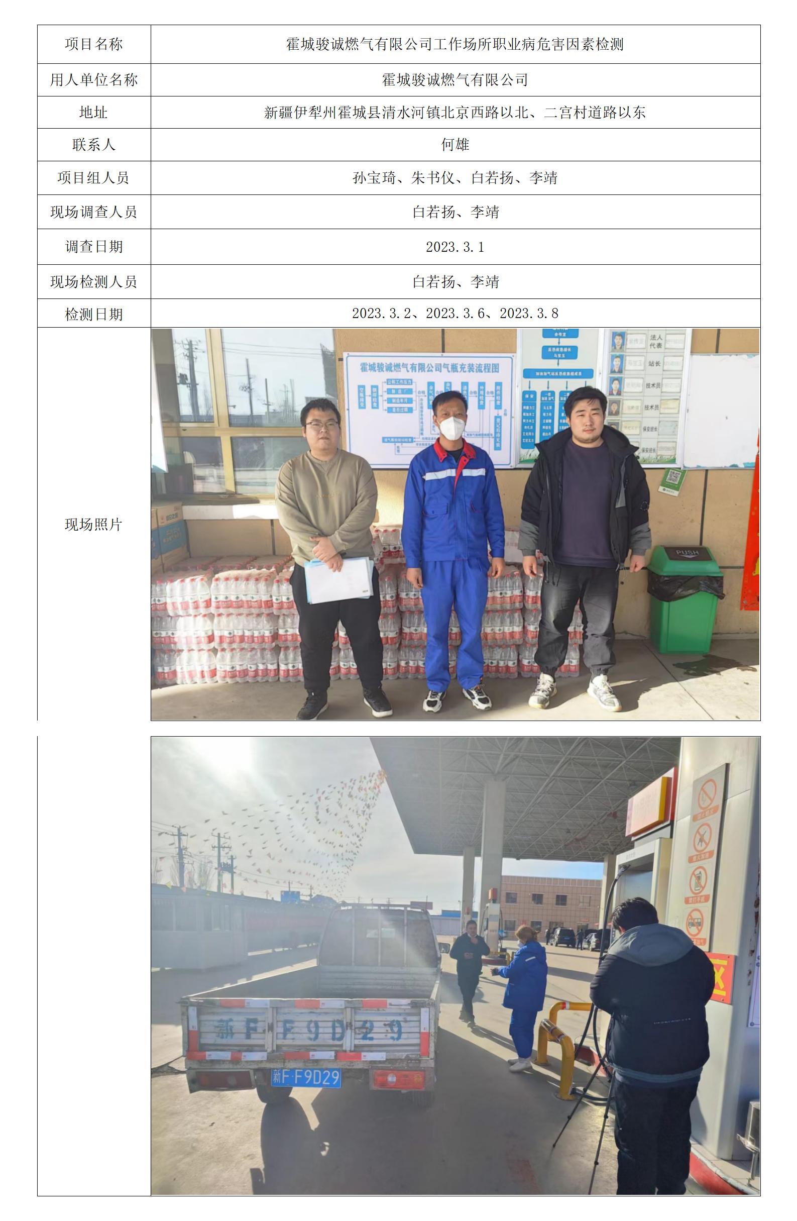 霍城骏诚燃气有限公司工作场所职业病危害因素检测