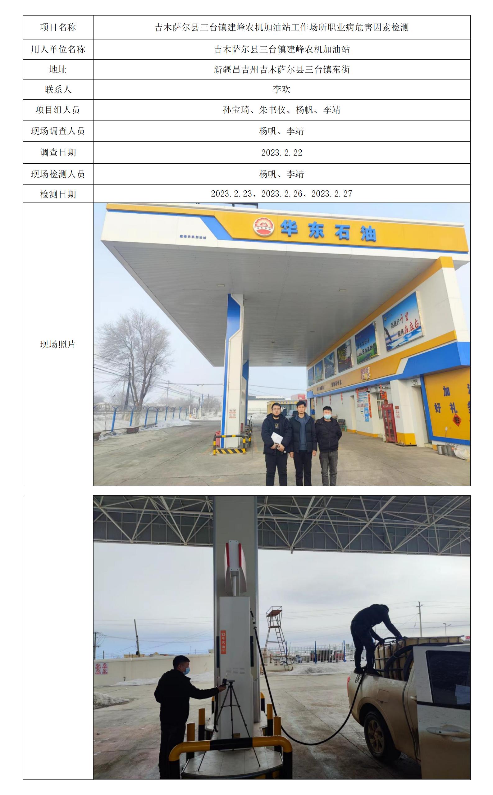 吉木萨尔县三台镇建峰农机加油站工作场所职业病危害因素检测