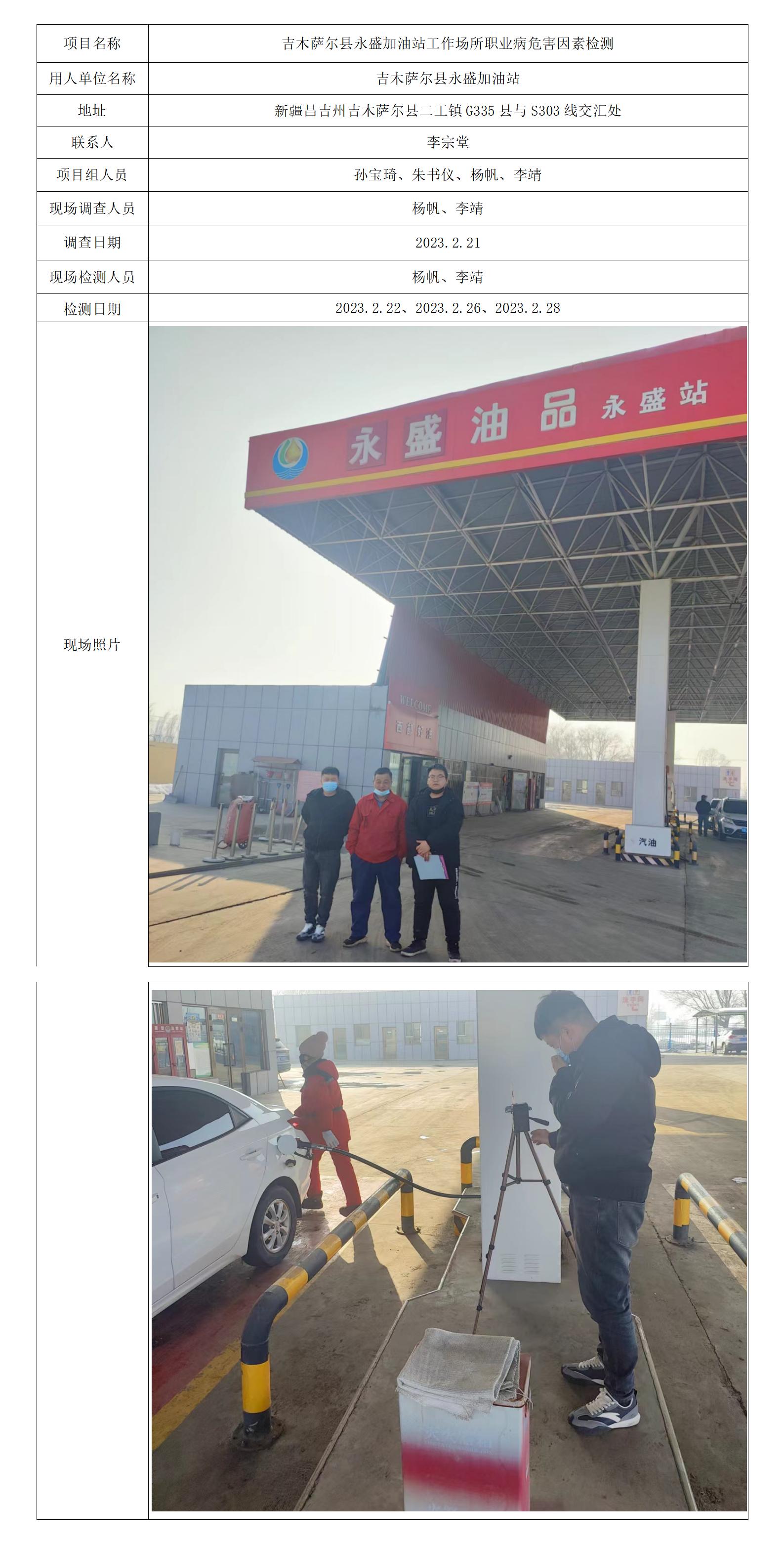 吉木萨尔县永盛加油站工作场所职业病危害因素检测