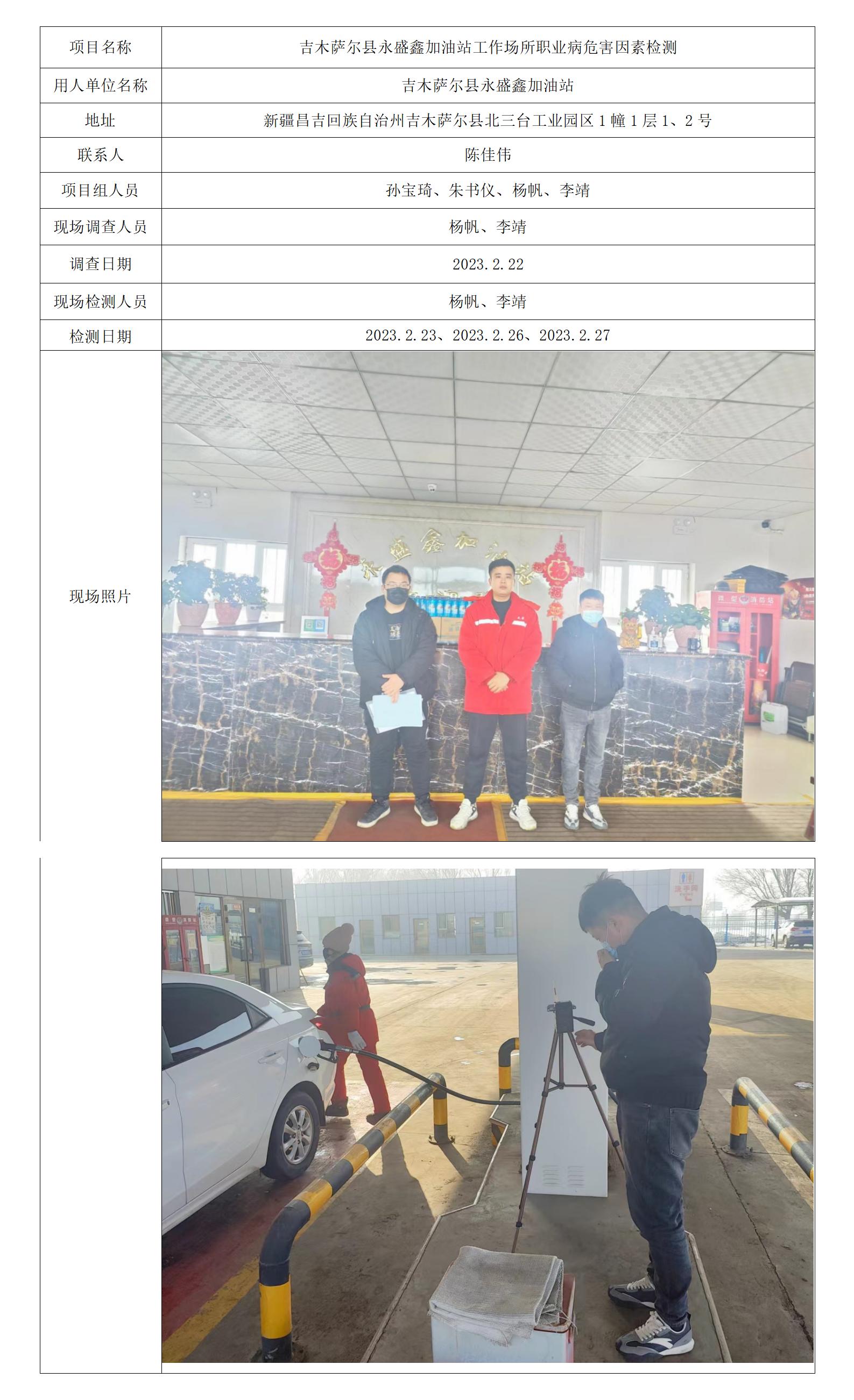 吉木萨尔县永盛鑫加油站工作场所职业病危害因素检测