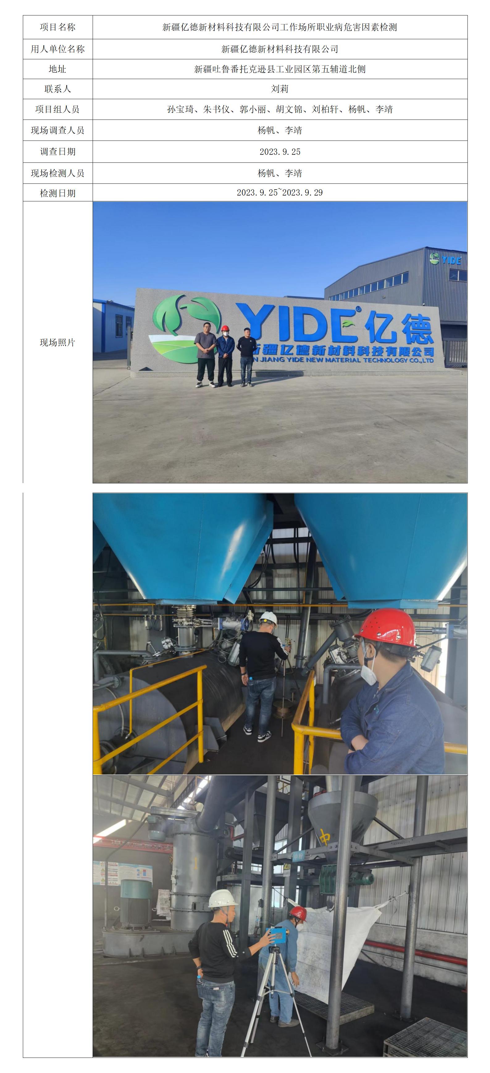 新疆亿德新材料科技有限公司工作场所职业病危害因素检测