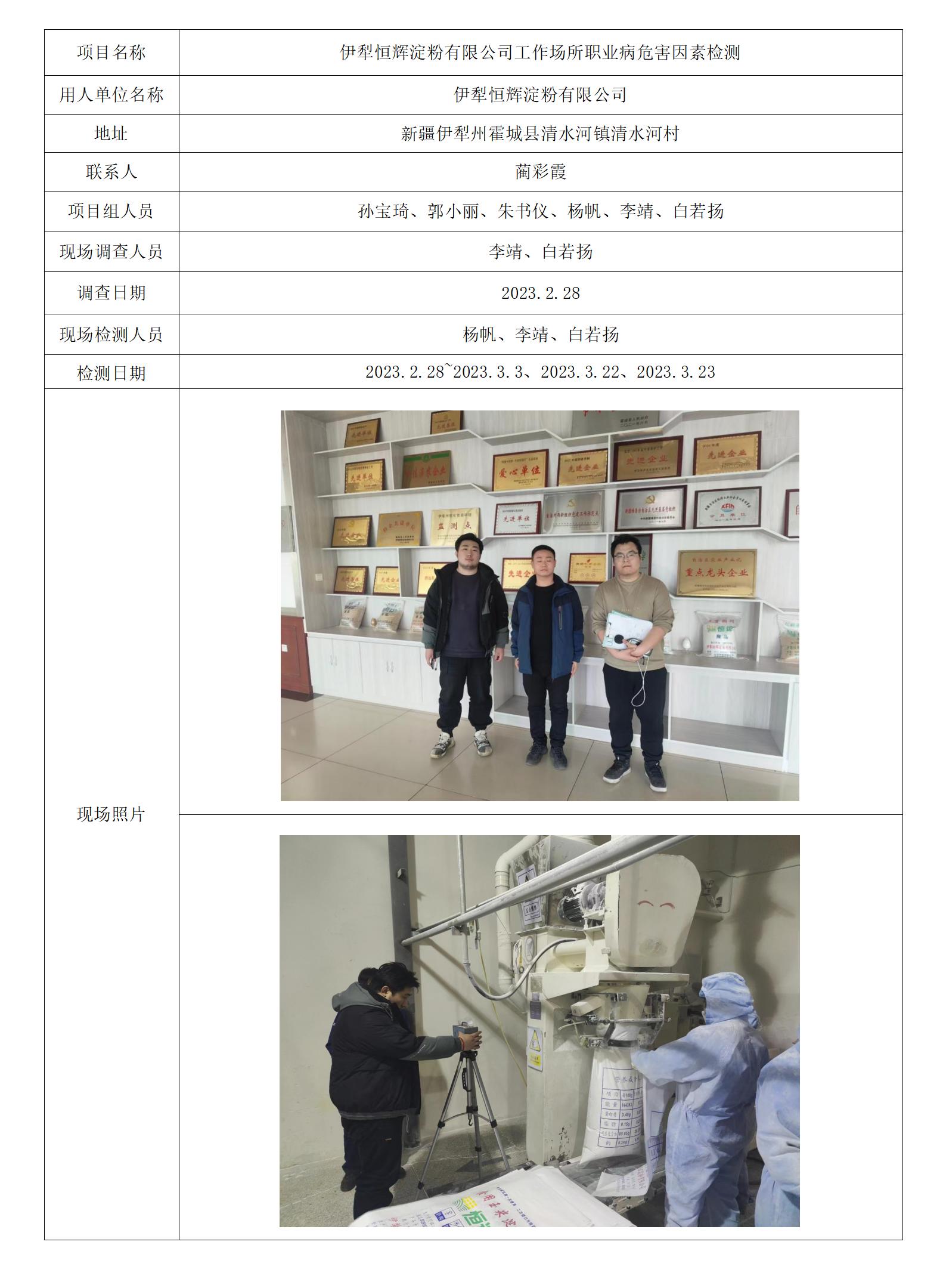 伊犁恒辉淀粉有限公司工作场所职业病危害因素检测