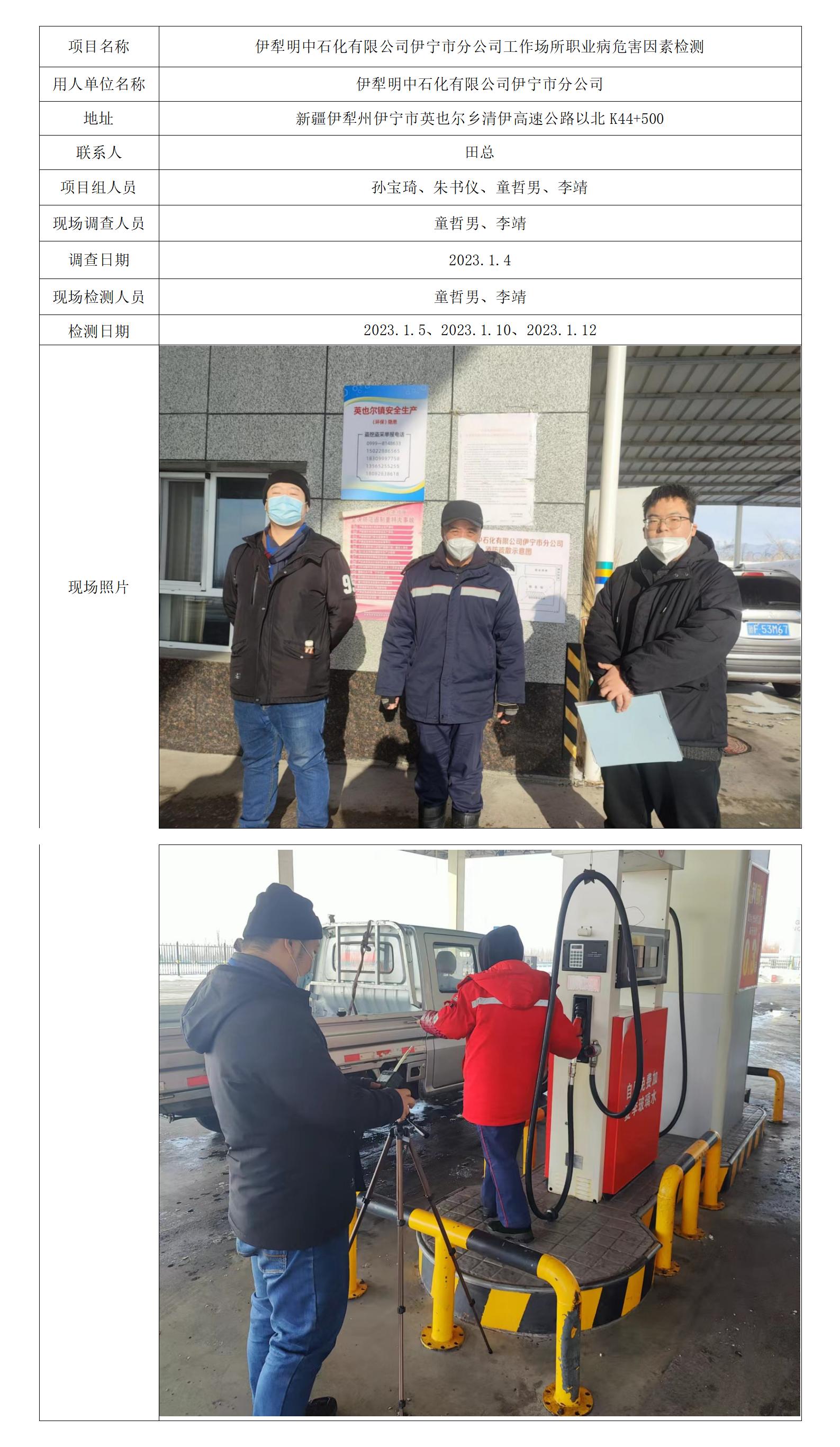 伊犁明中石化有限公司伊宁市分公司工作场所职业病危害因素检测