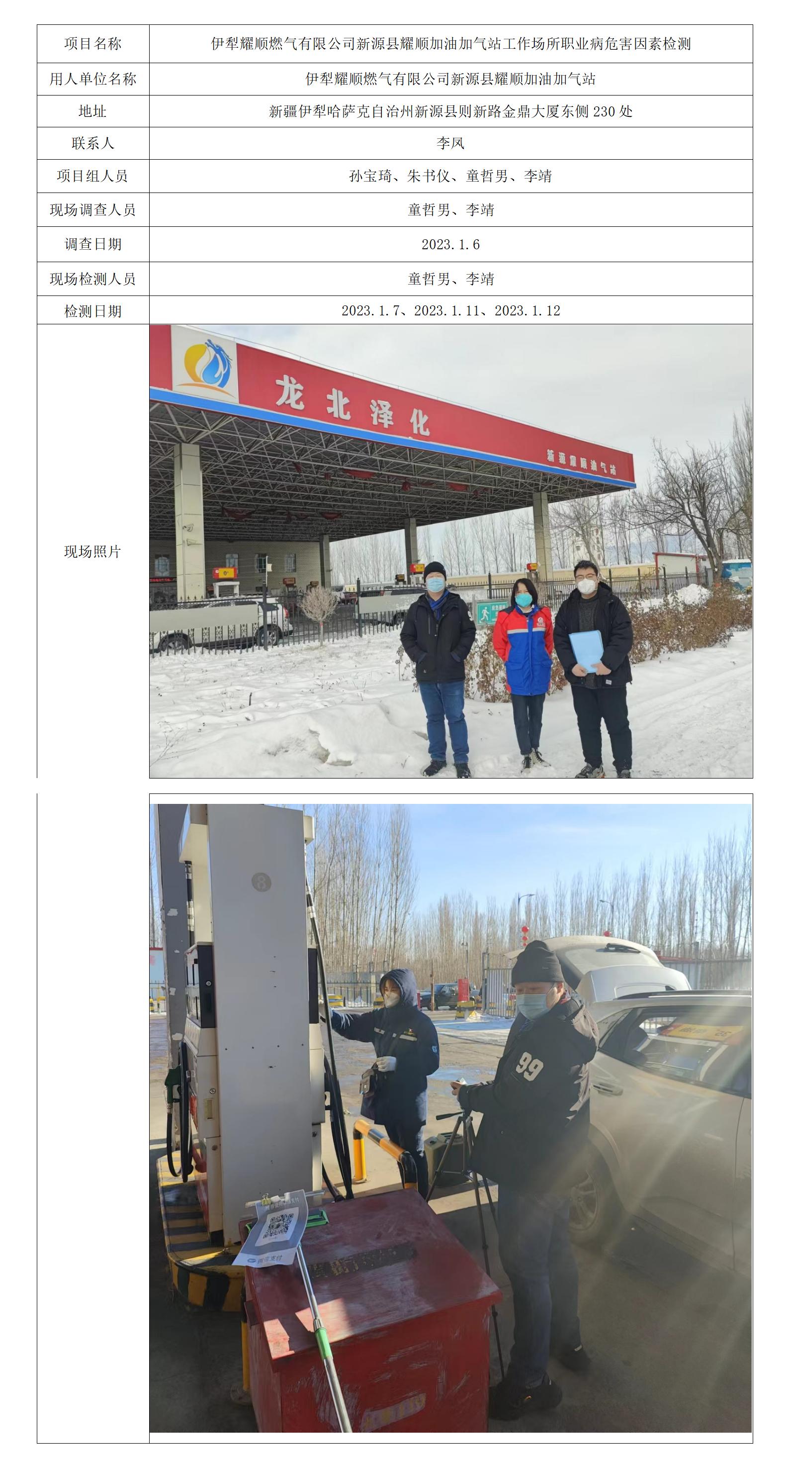 伊犁耀顺燃气有限公司新源县耀顺加油加气站工作场所职业病危害因素检测