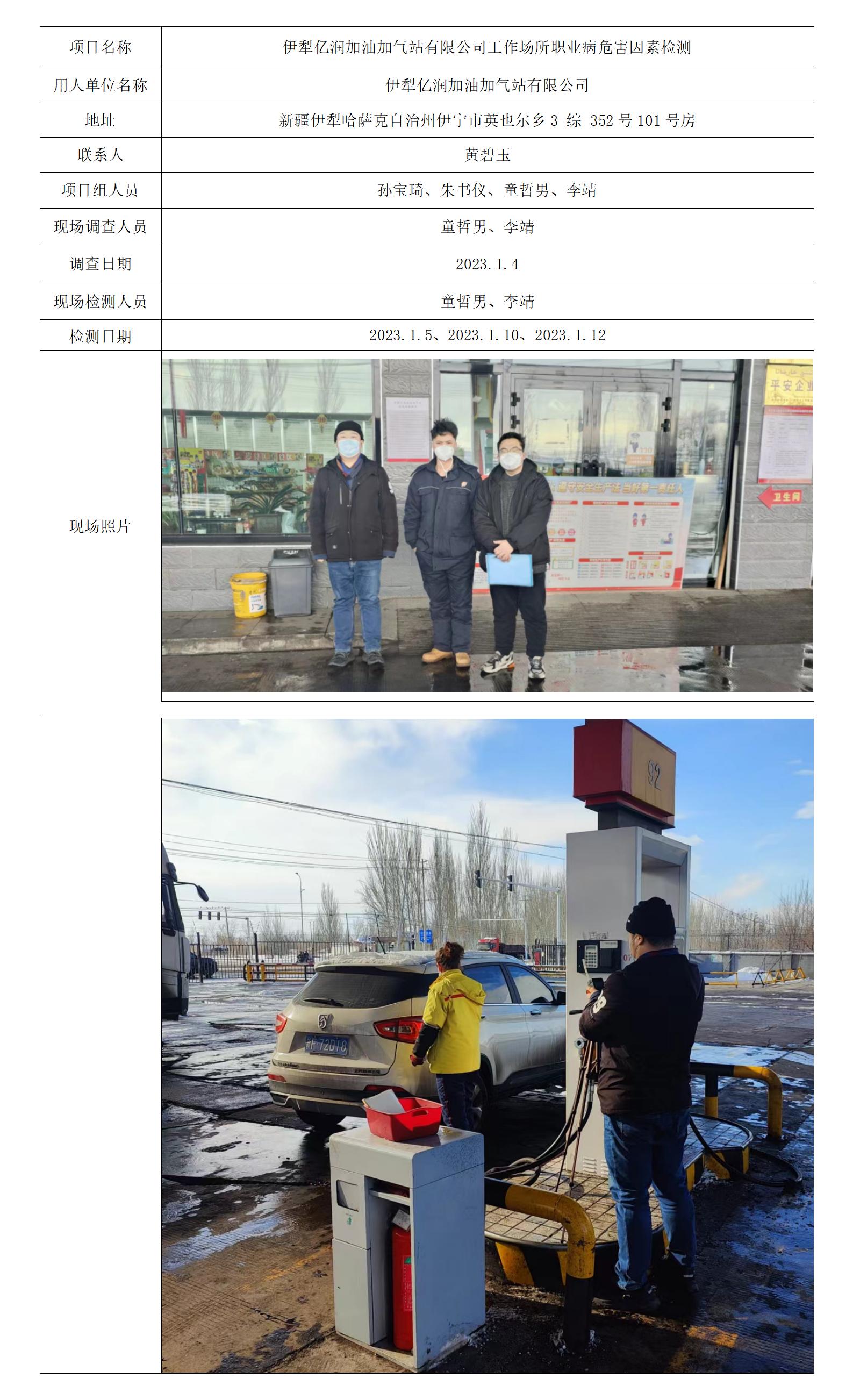 伊犁亿润加油加气站有限公司工作场所职业病危害因素检测