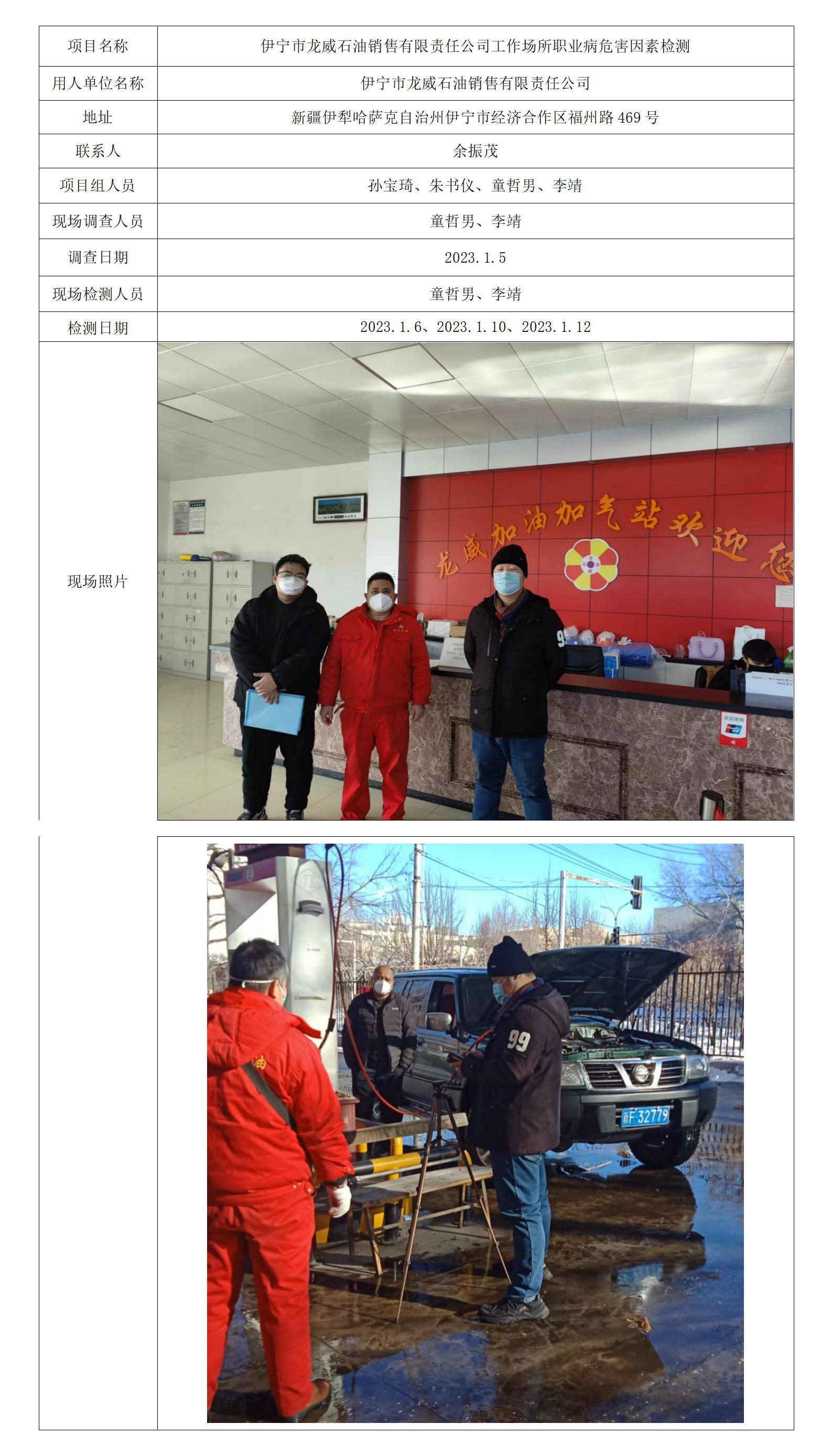 伊宁市龙威石油销售有限责任公司工作场所职业病危害因素检测
