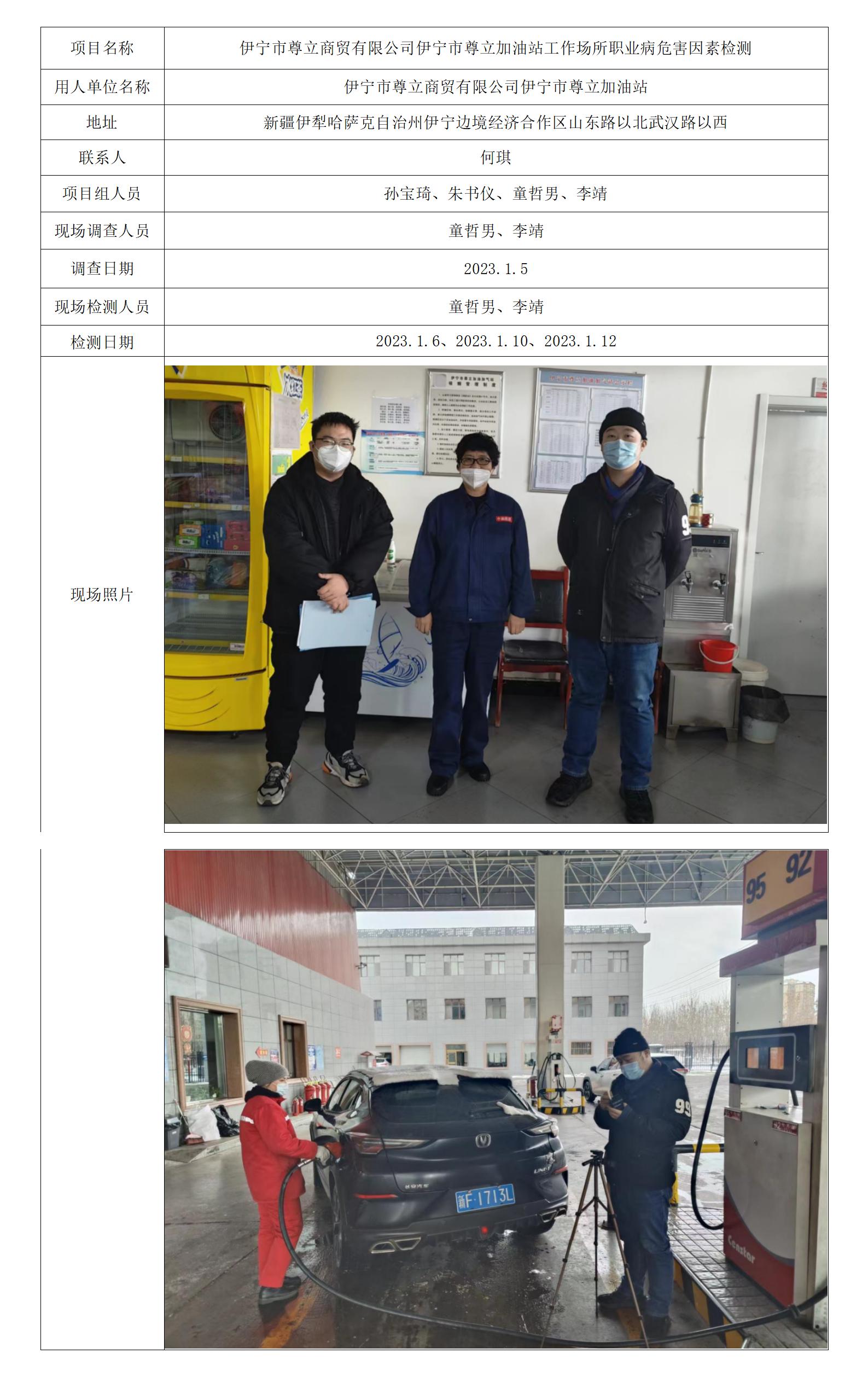 伊宁市尊立商贸有限公司伊宁市尊立加油站工作场所职业病危害因素检测