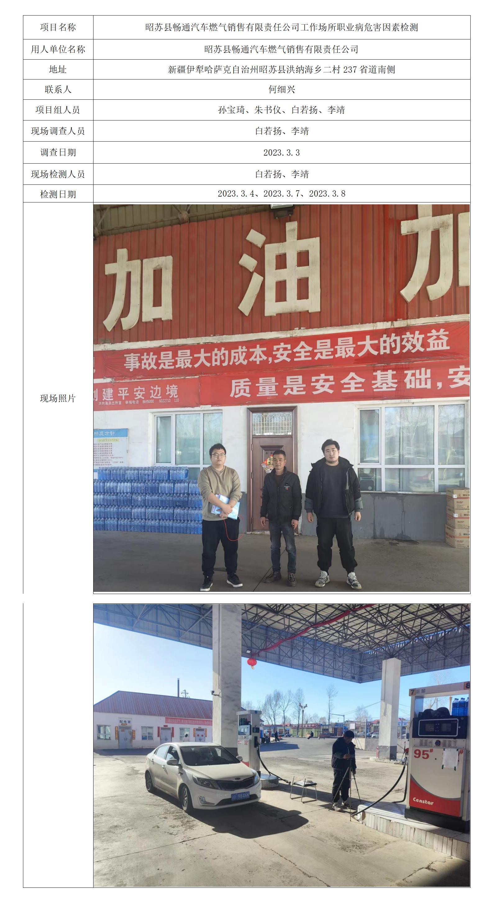 昭苏县畅通汽车燃气销售有限责任公司工作场所职业病危害因素检测