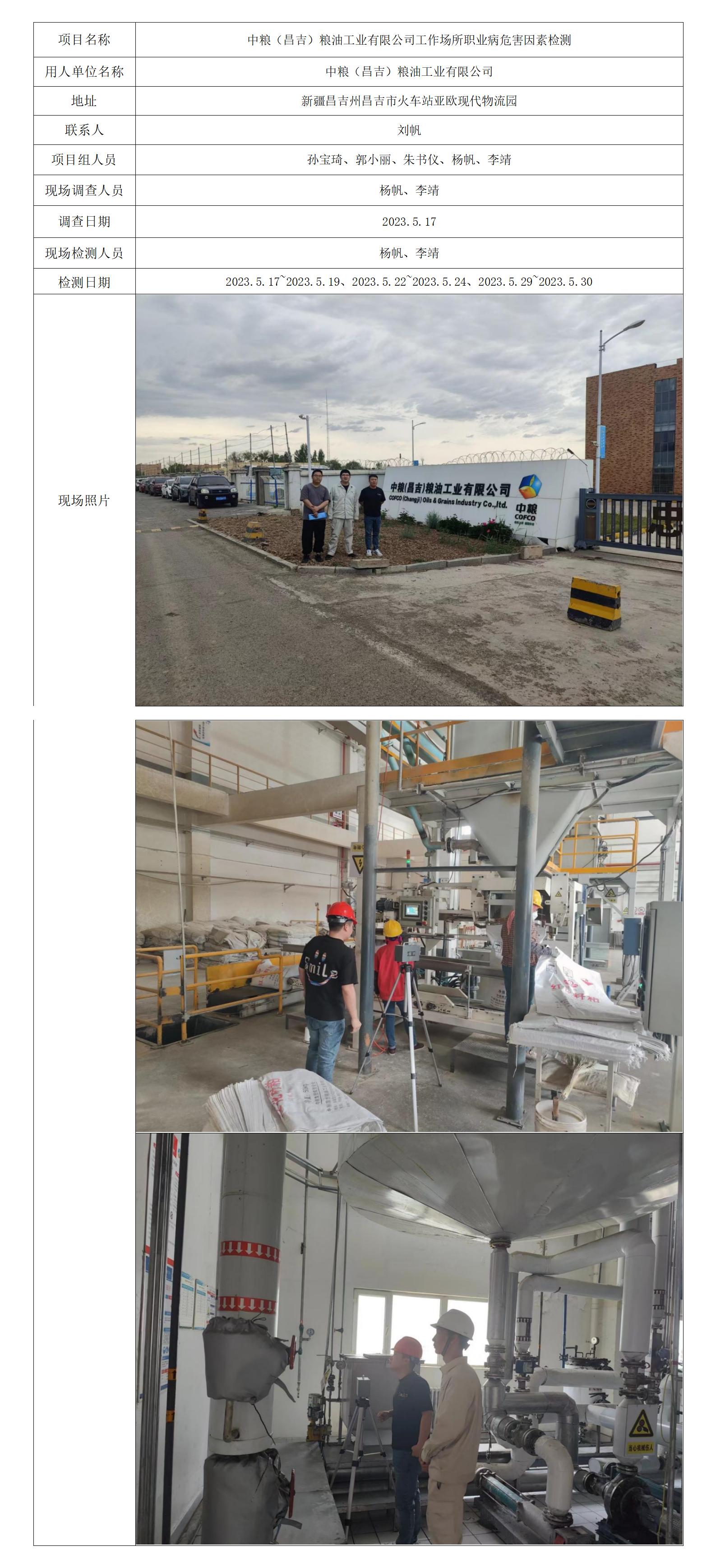 中粮(昌吉)粮油工业有限公司工作场所职业病危害因素检测