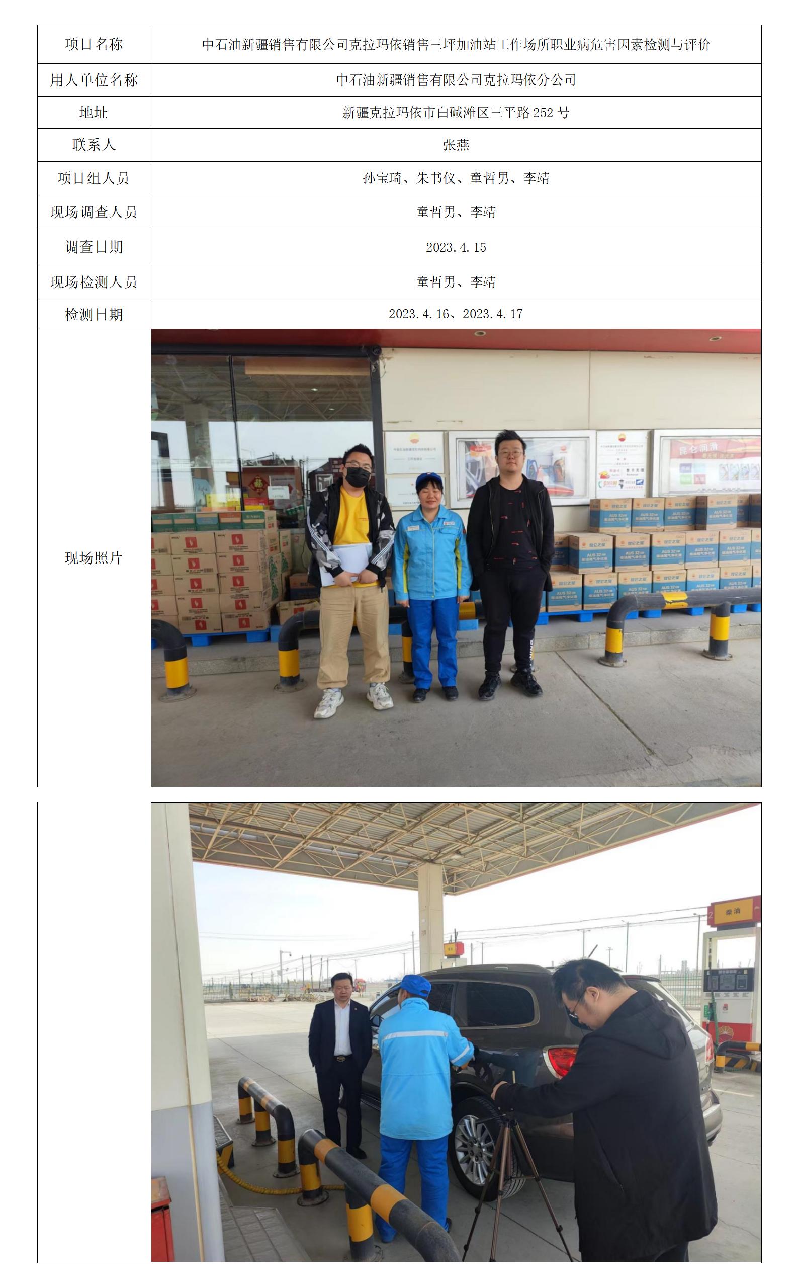中石油新疆销售有限公司克拉玛依销售三坪加油站工作场所职业病危害因素检测与评价