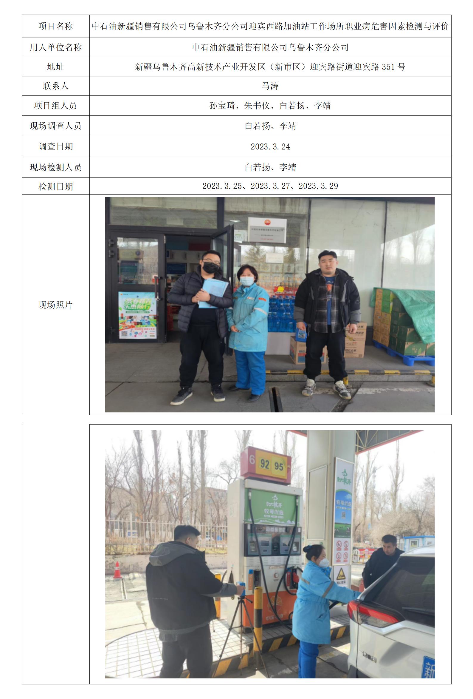 中石油新疆销售有限公司乌鲁木齐分公司迎宾西路加油站工作场所职业病危害因素检测与评价 2023-04-19 16:30:02