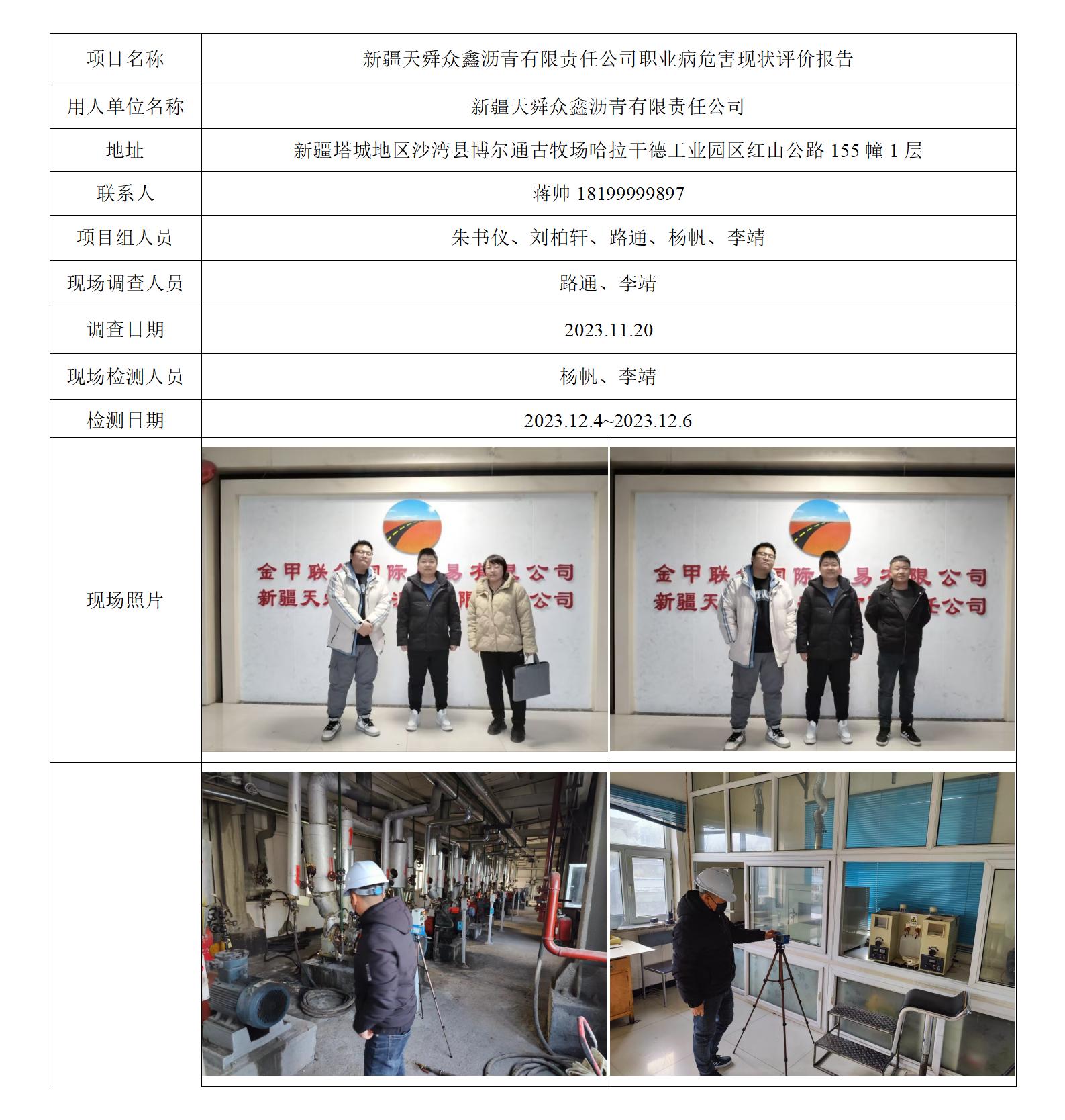 新疆天舜众鑫沥青有限责任公司职业病危害现状评价报告