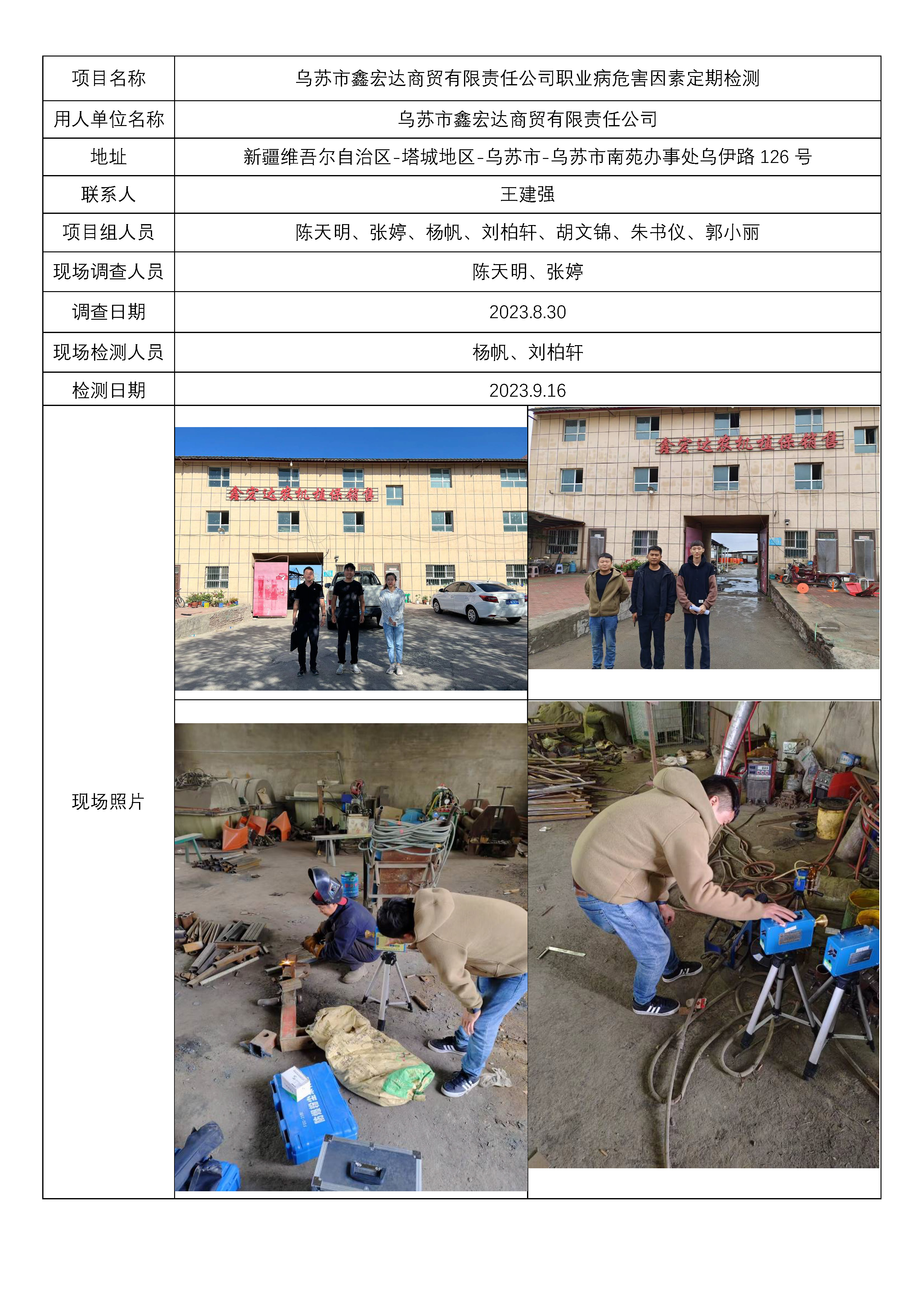 乌苏市鑫宏达商贸有限责任公司职业病危害因素定期检测