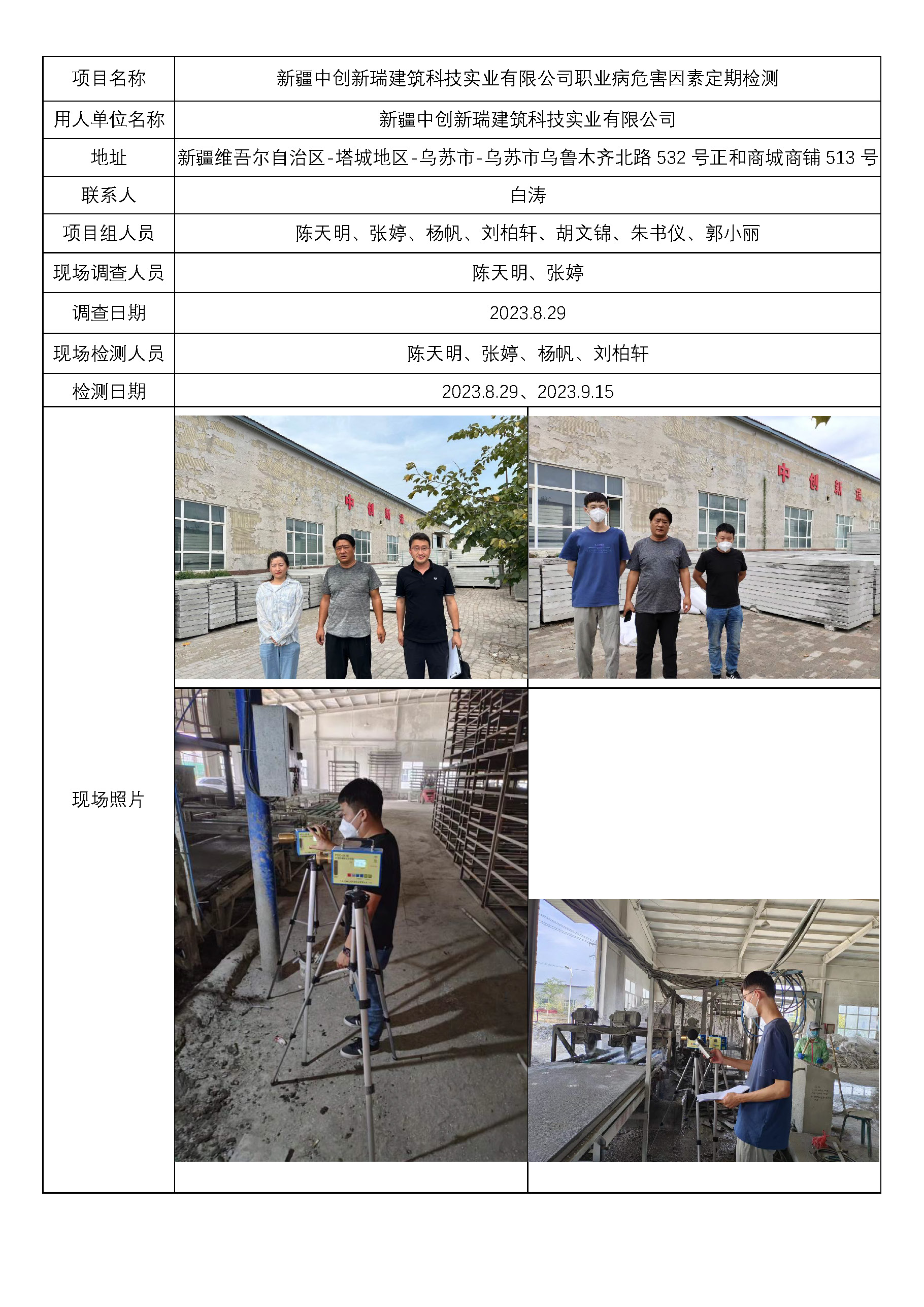 新疆中创新瑞建筑科技实业有限公司职业病危害因素定期检测