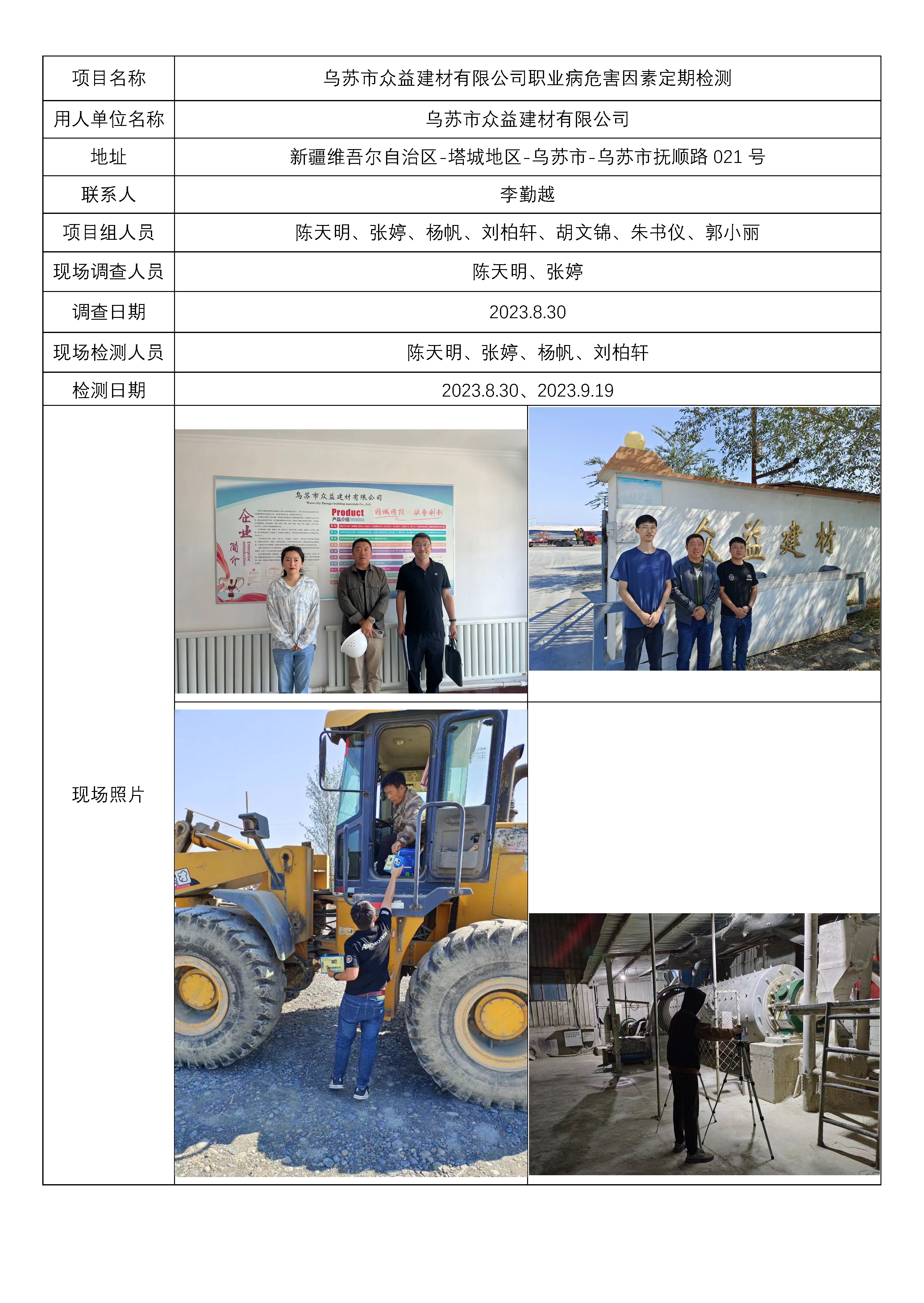 乌苏市众益建材有限公司职业病危害因素定期检测